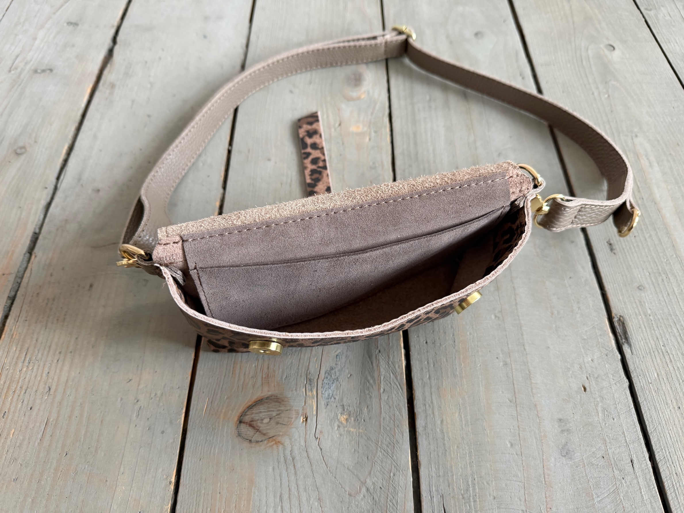 Uszyta ze skóry naturalnej licowej + nubukowej.