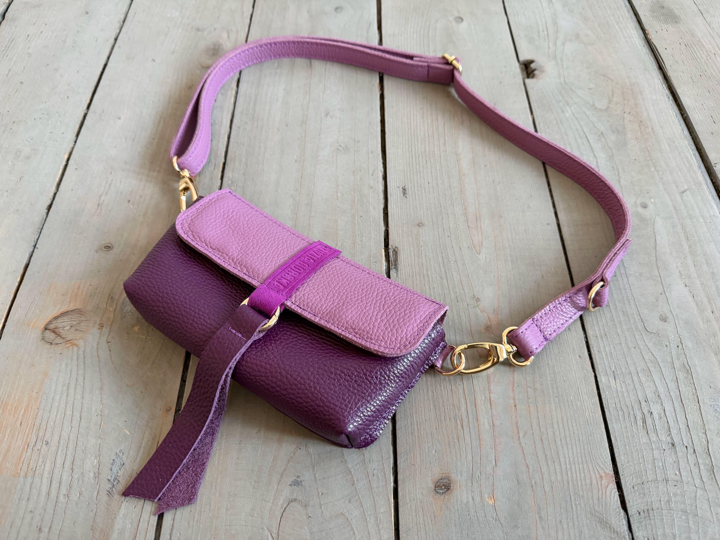Uszyta ze skóry naturalnej licowej.
