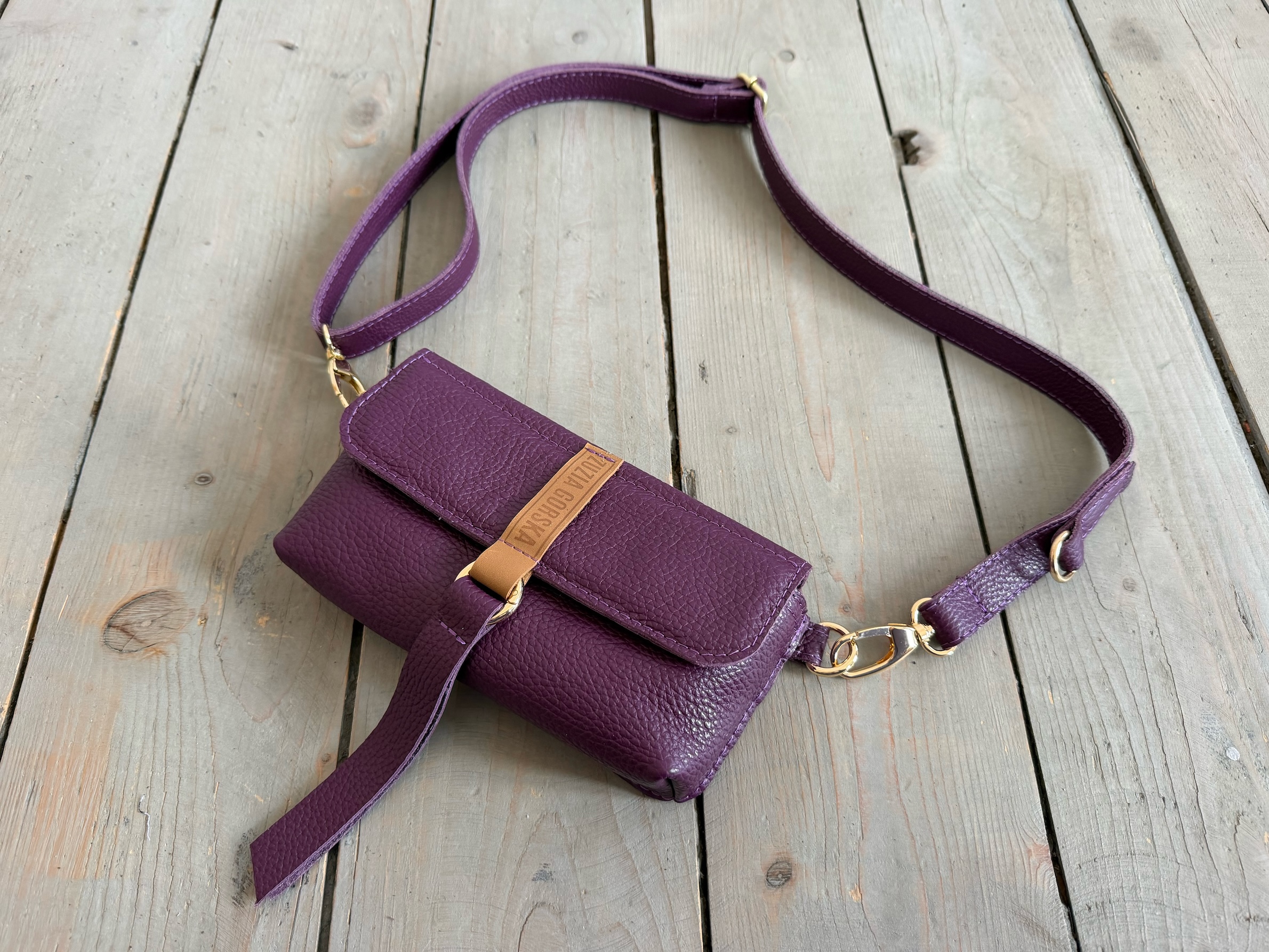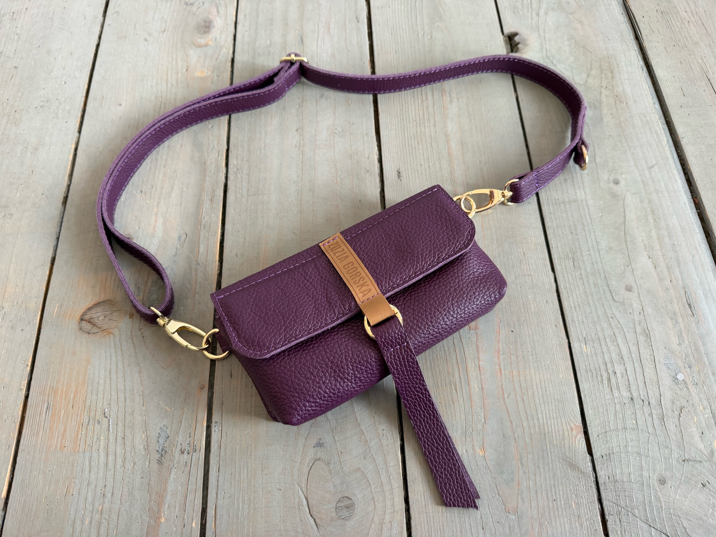 Uszyta ze skóry naturalnej licowej.