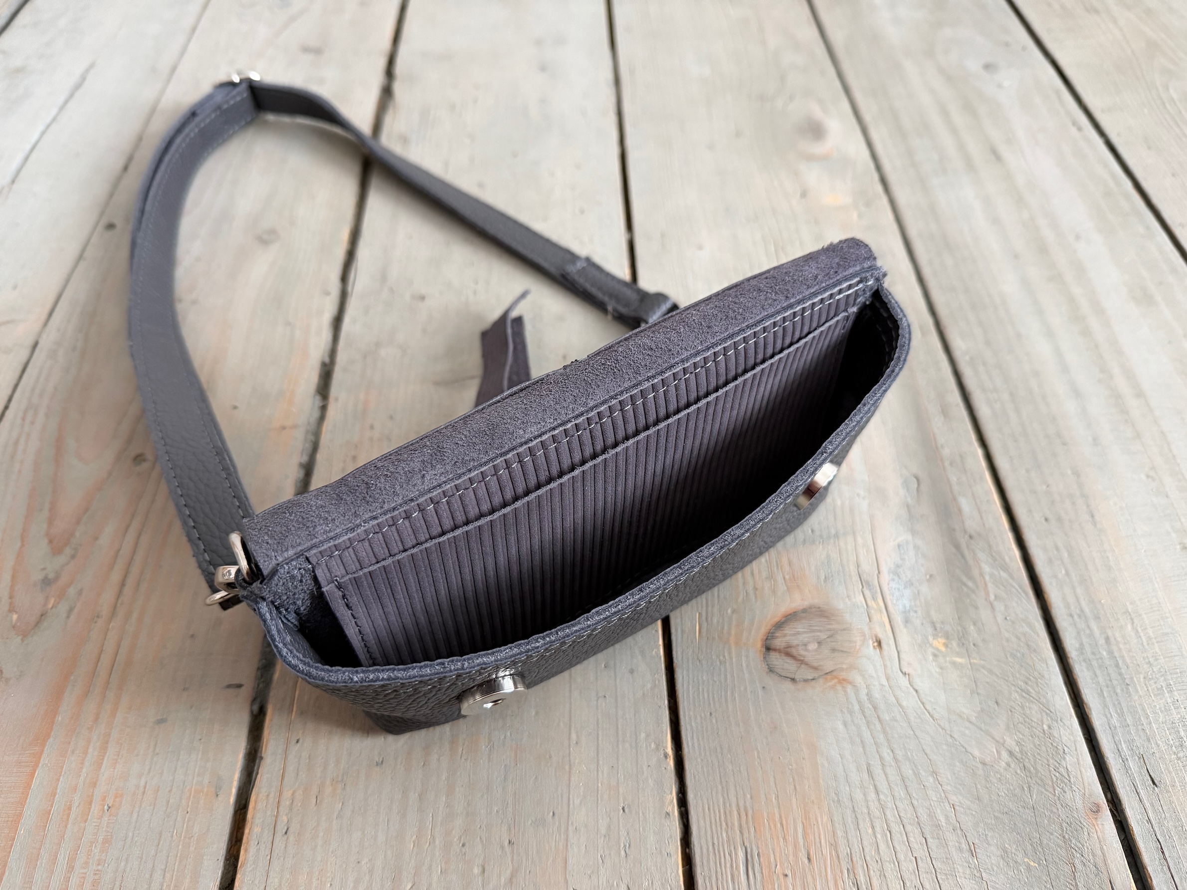 Uszyta ze skóry naturalnej licowej + nubukowej.