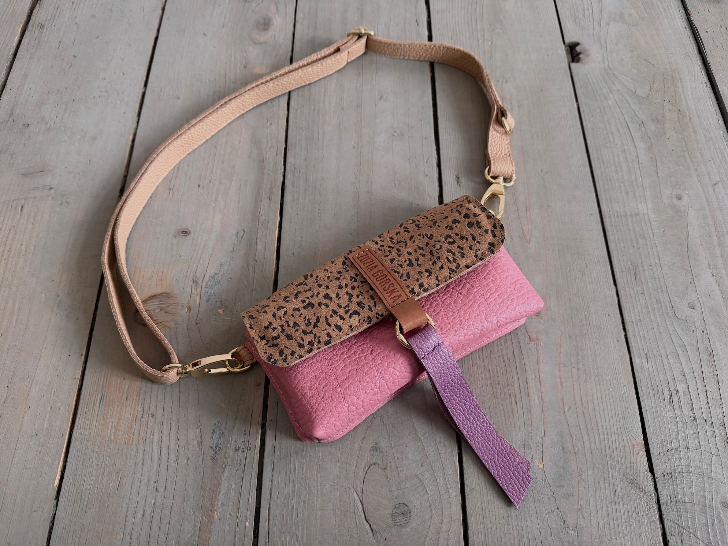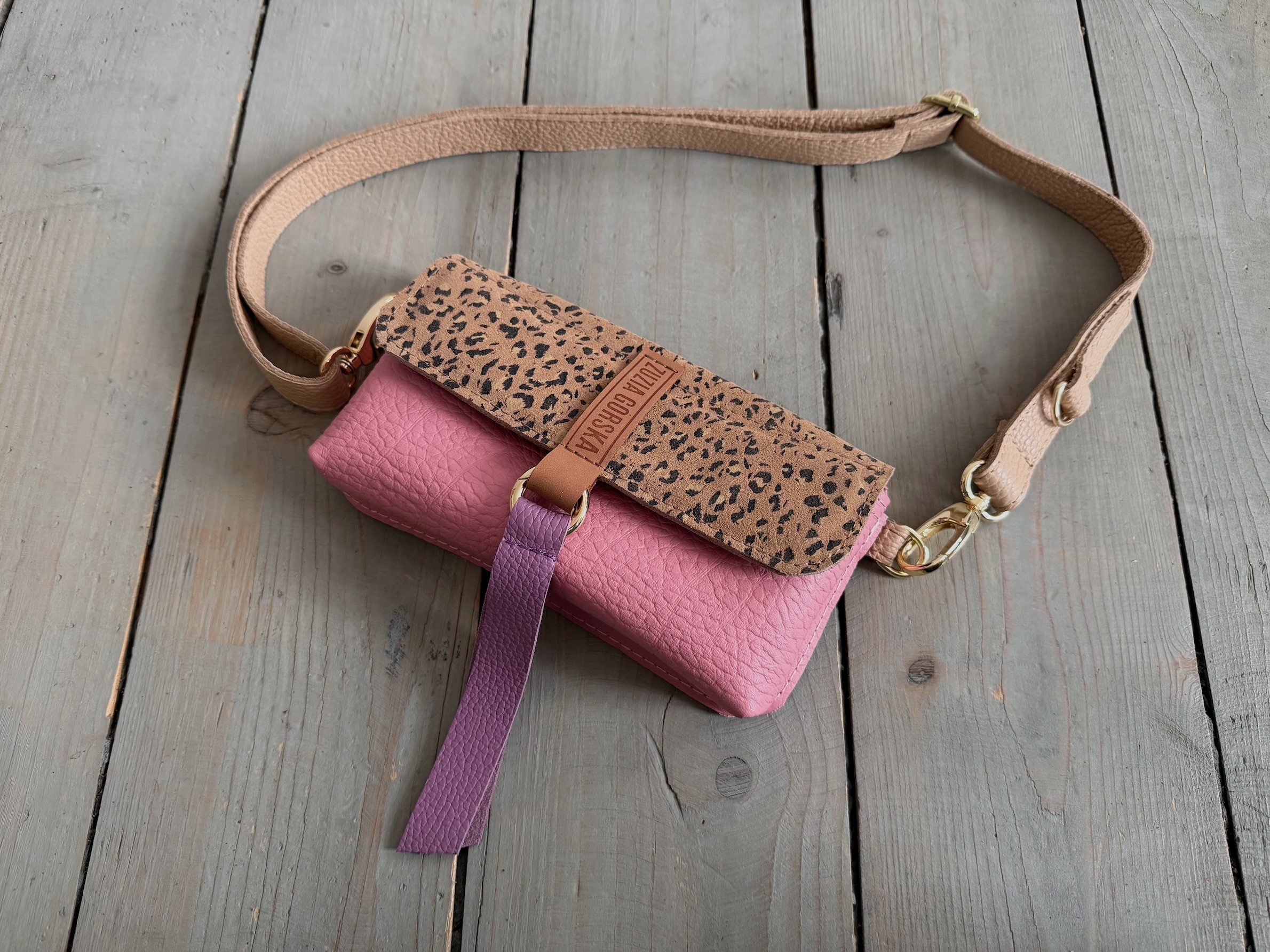 Mobiler Pink Elephant + Leopard II Camel Suede