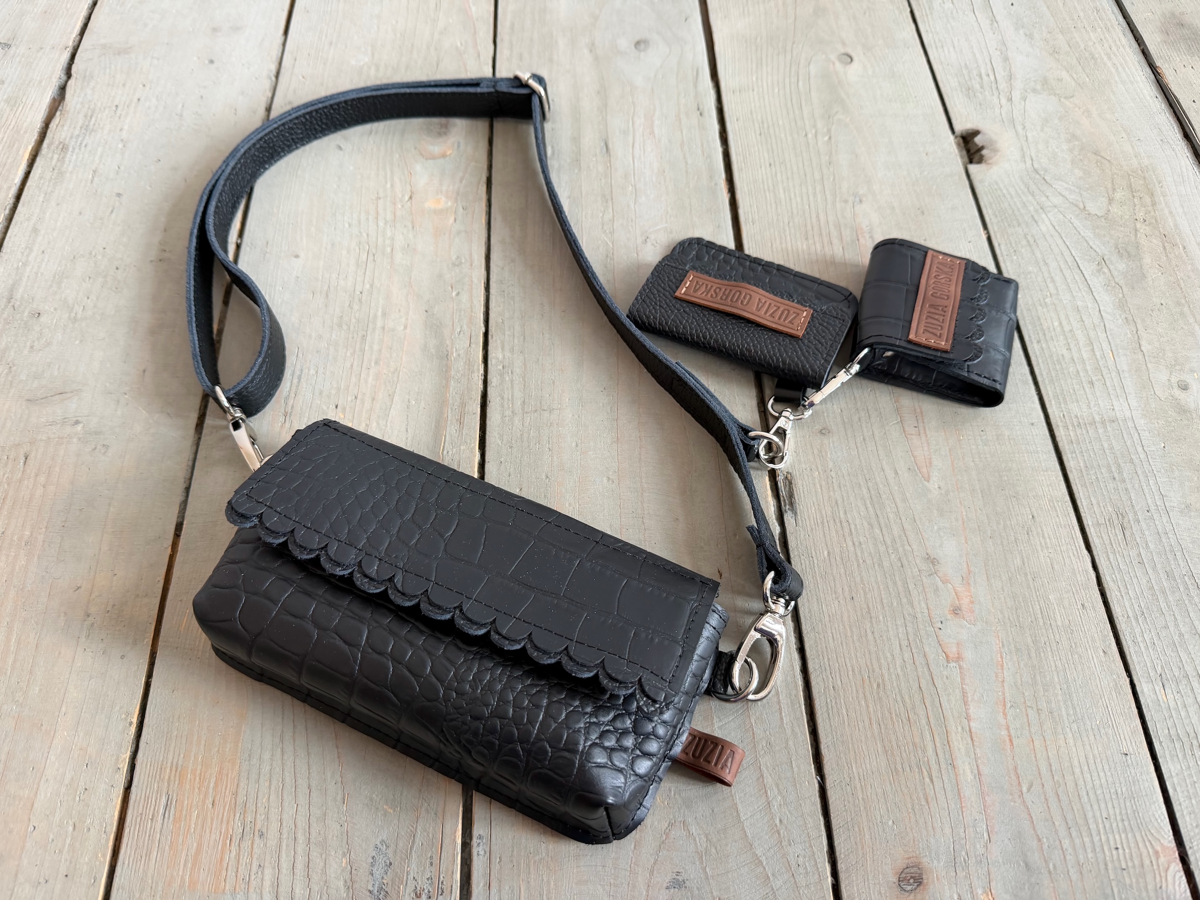 Mobiler Two Wavy Black Croco II + Crystal Black Nubuck + Headphone Case