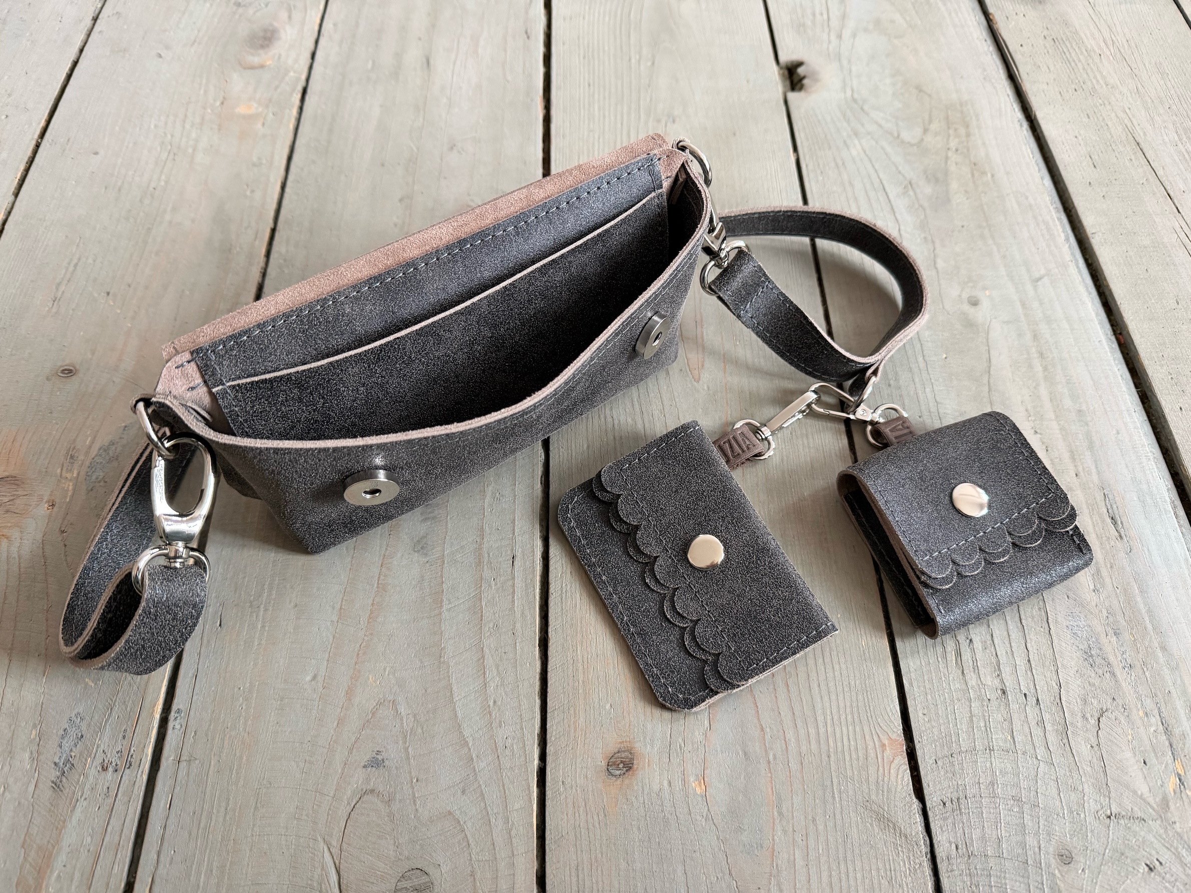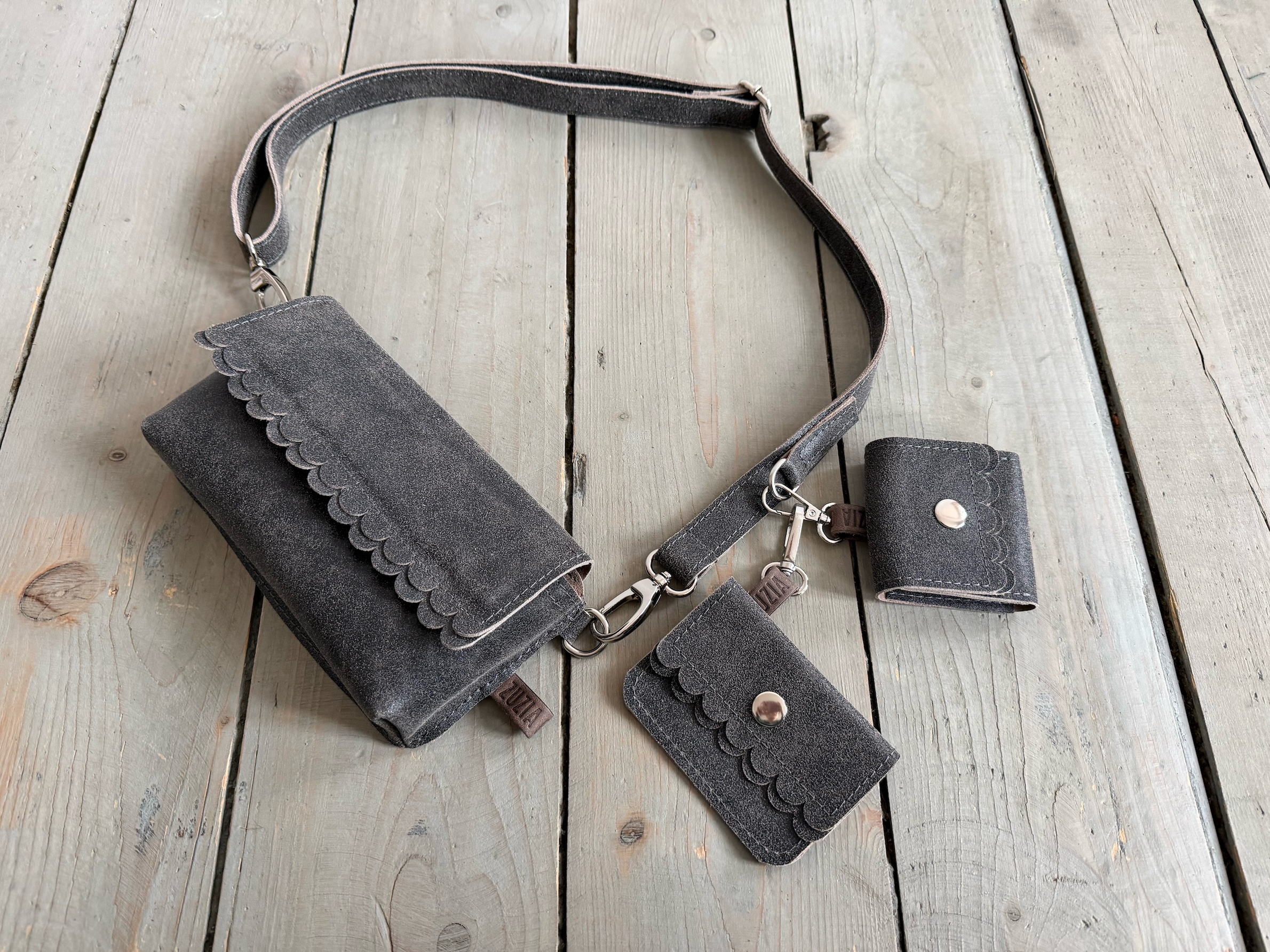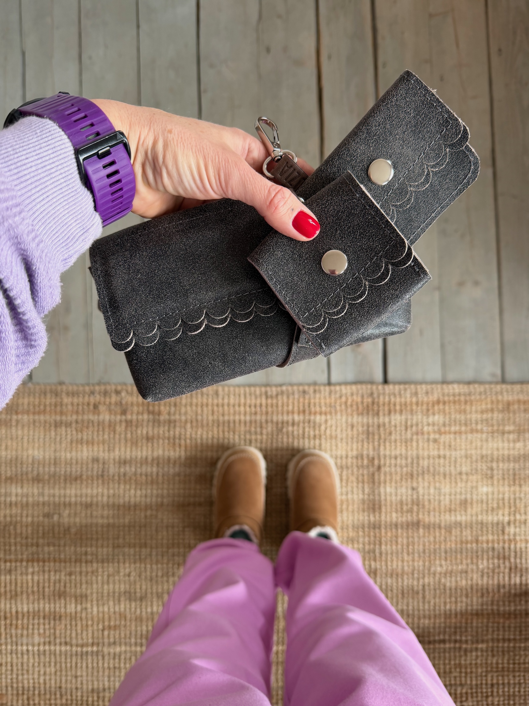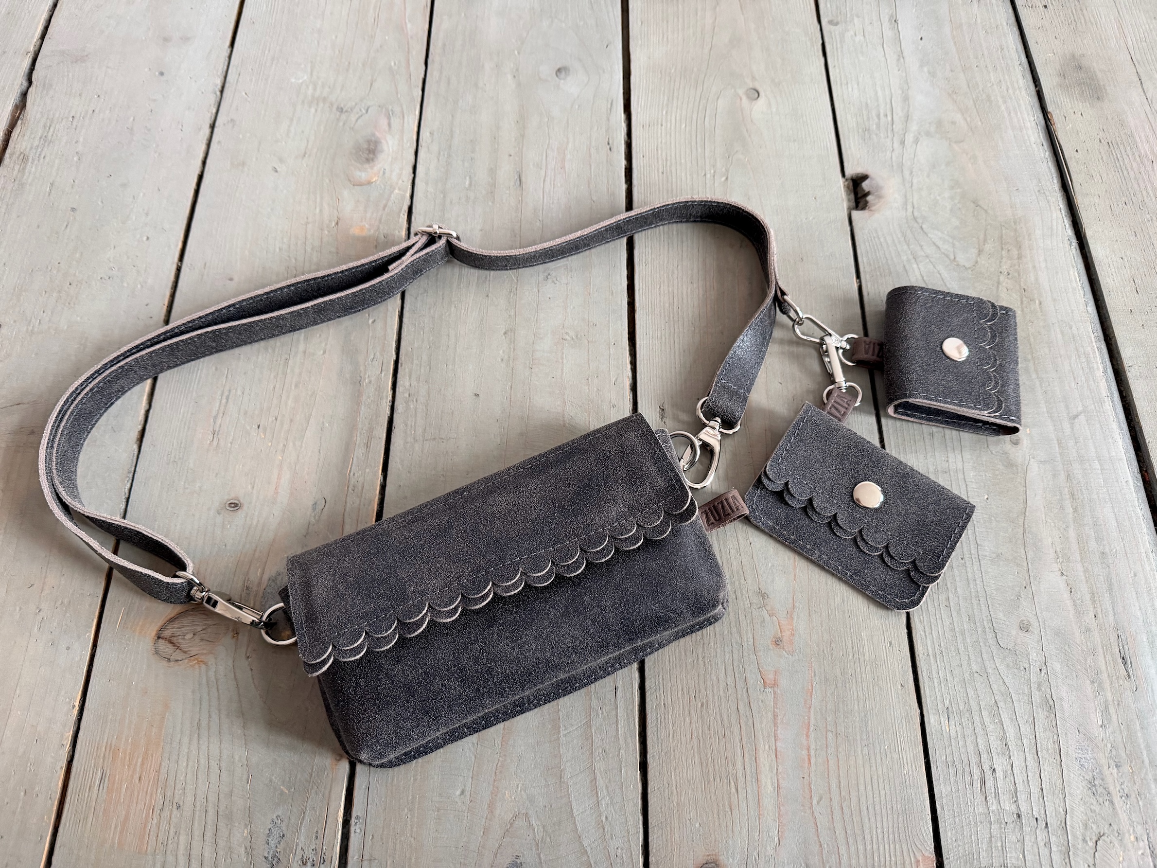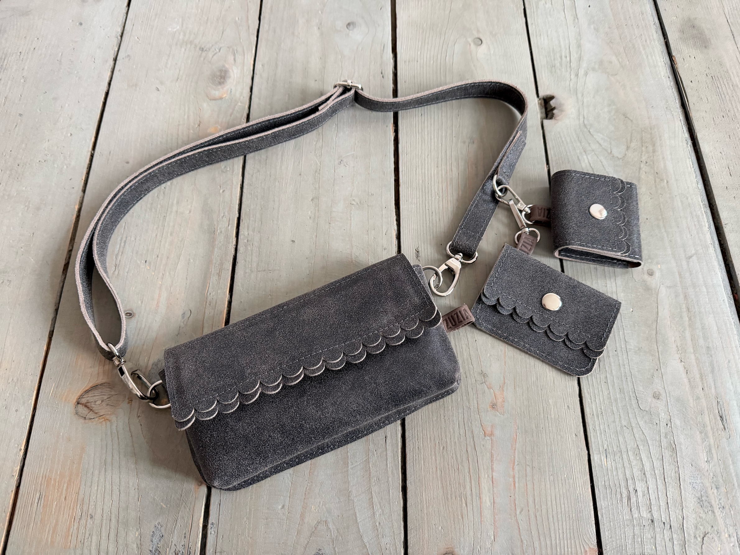 Mobiler Two Wavy Creck Grey Suede + Headphone Case + Card Holder