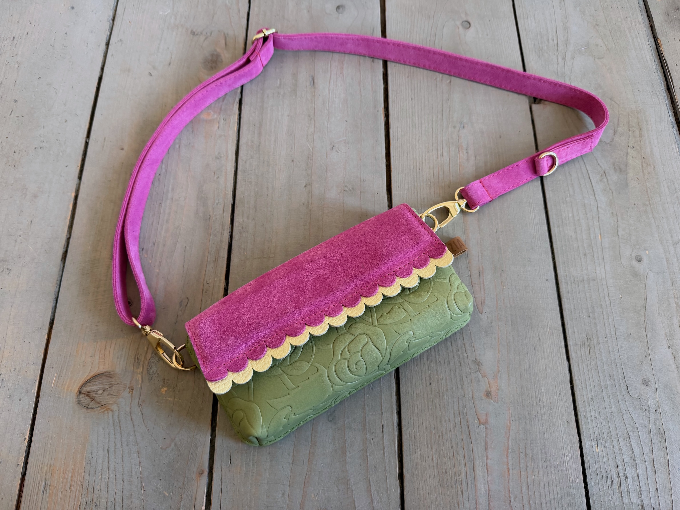 Mobiler Two Wavy Olive Roses + Fuchsia Suede + Canarino