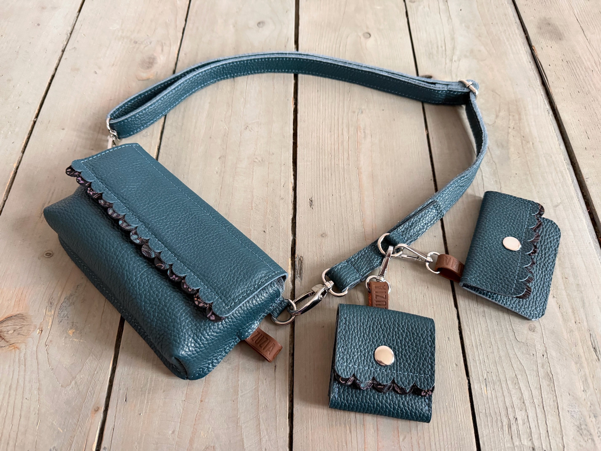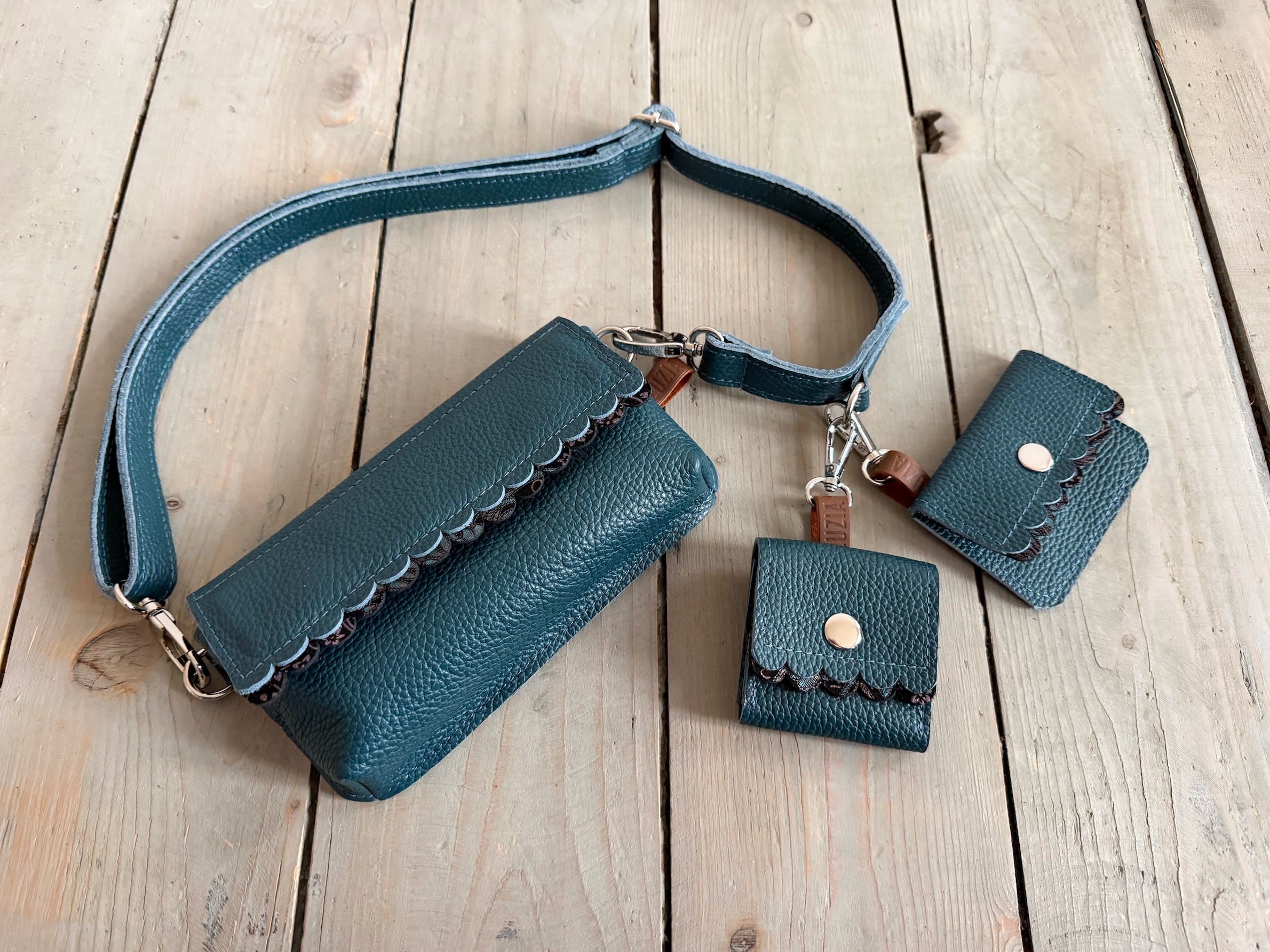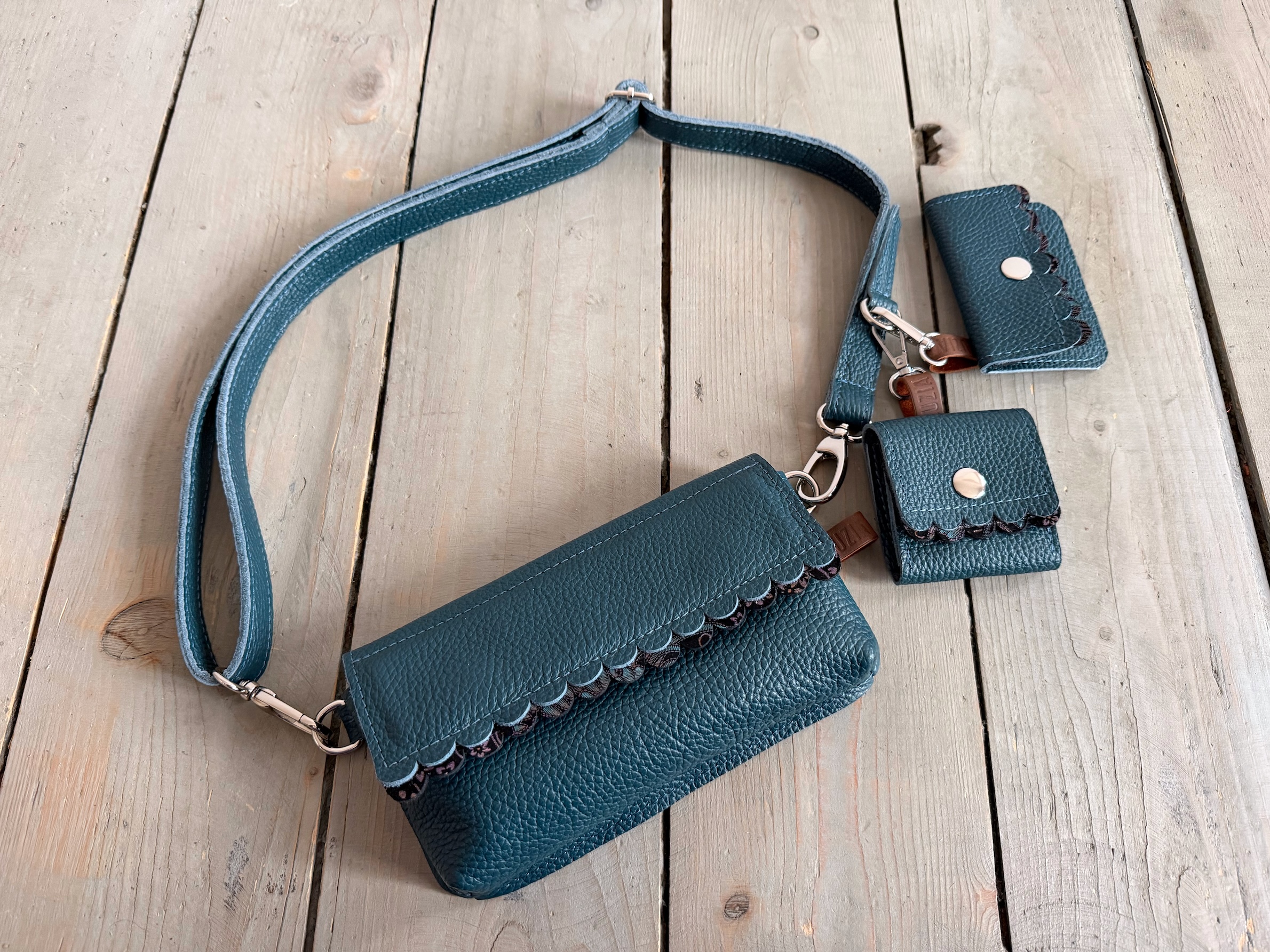 Mobiler Two Wavy Petrol + Paisley Nubuck + Headphone Case + Card Holder
