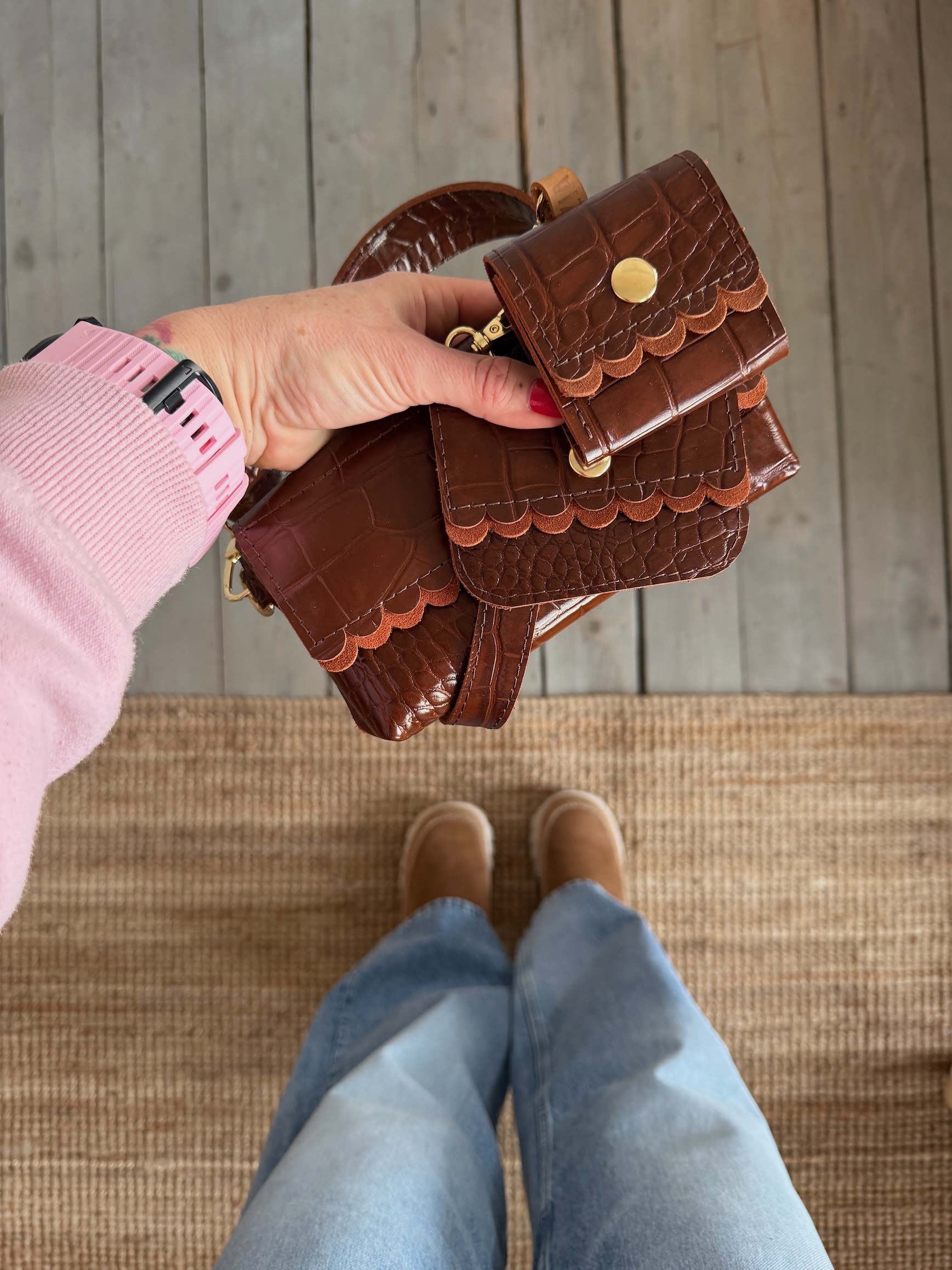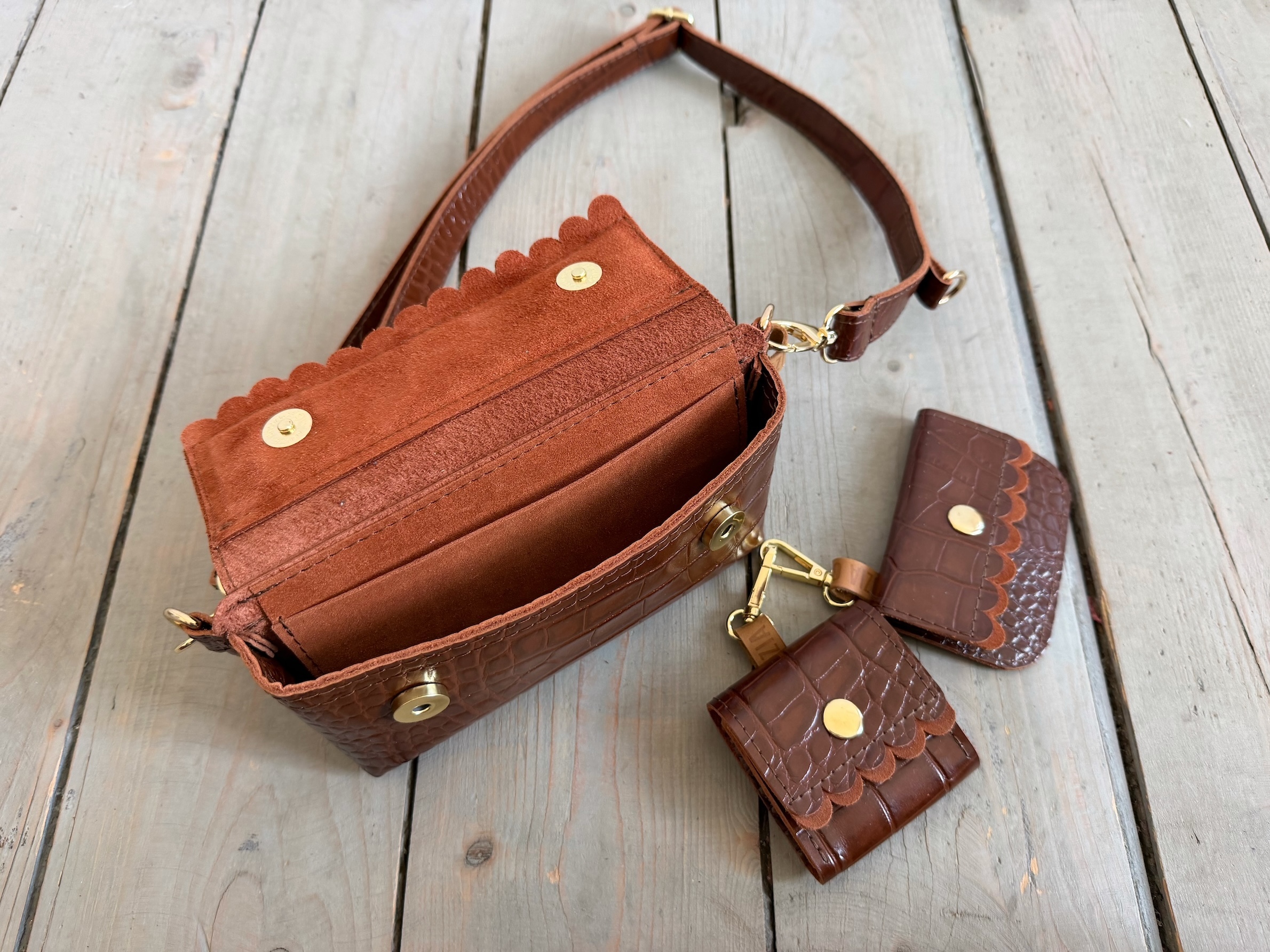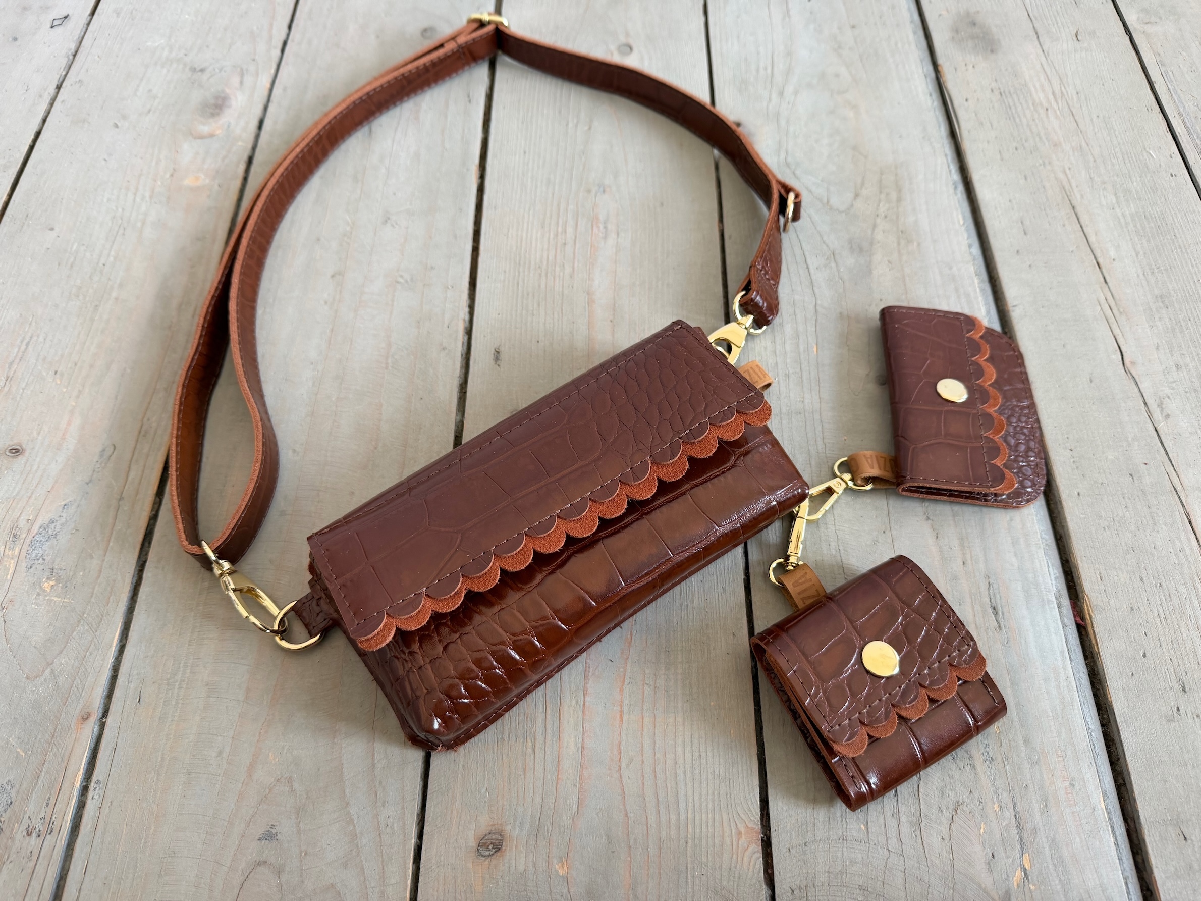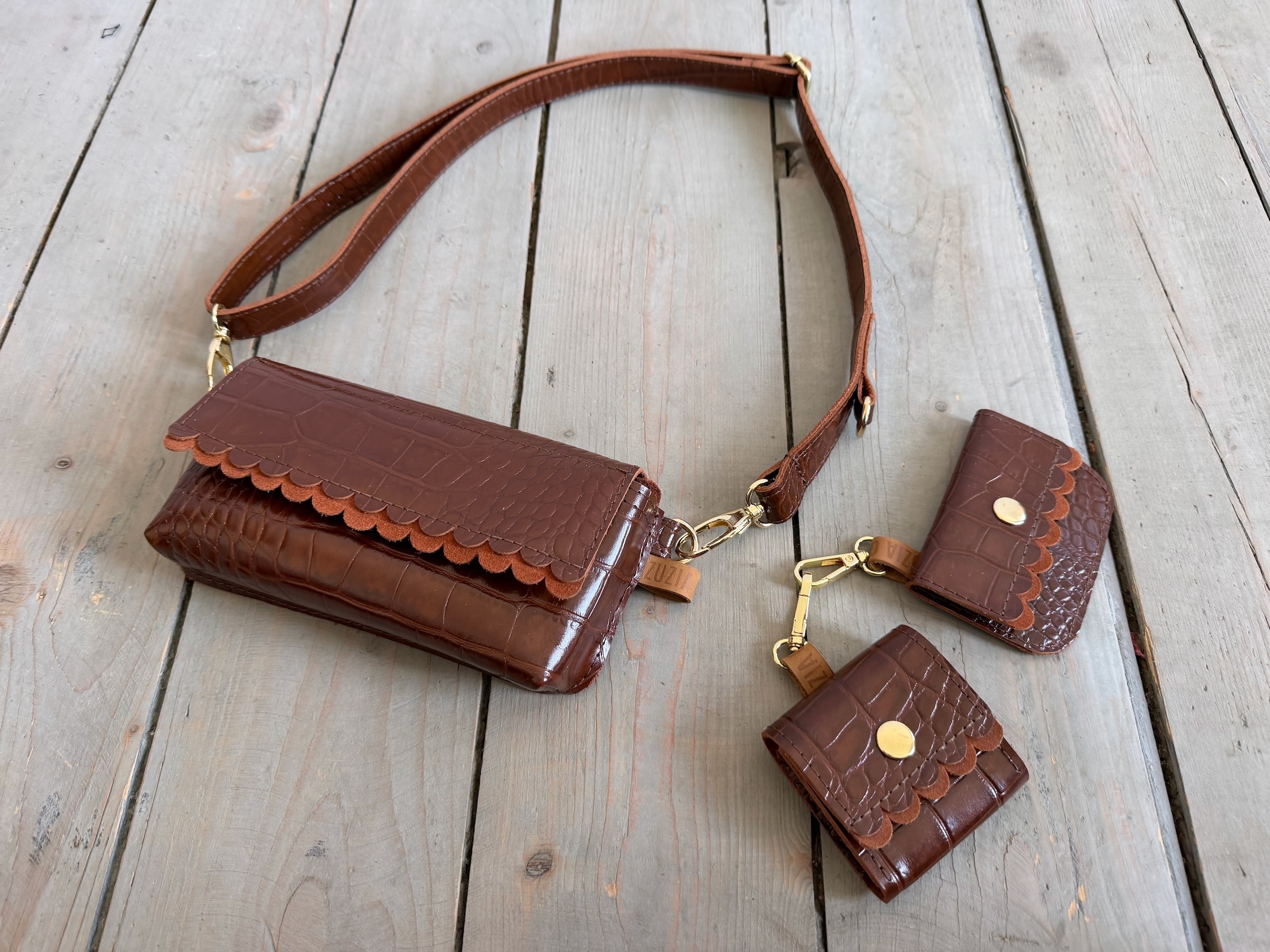 Mobiler Two Wavy Twotone Brown Croco + Headphone Case + Card Holder