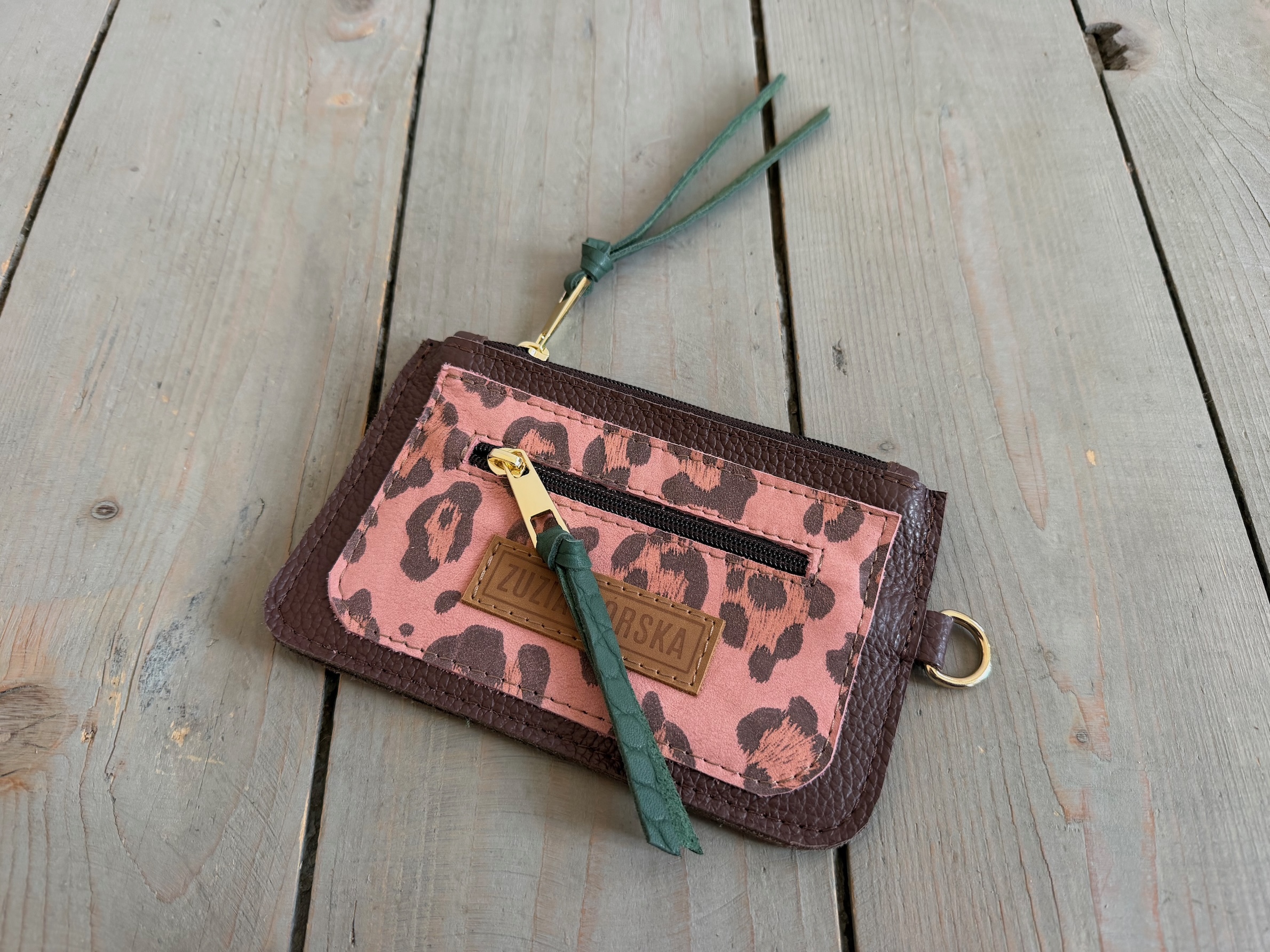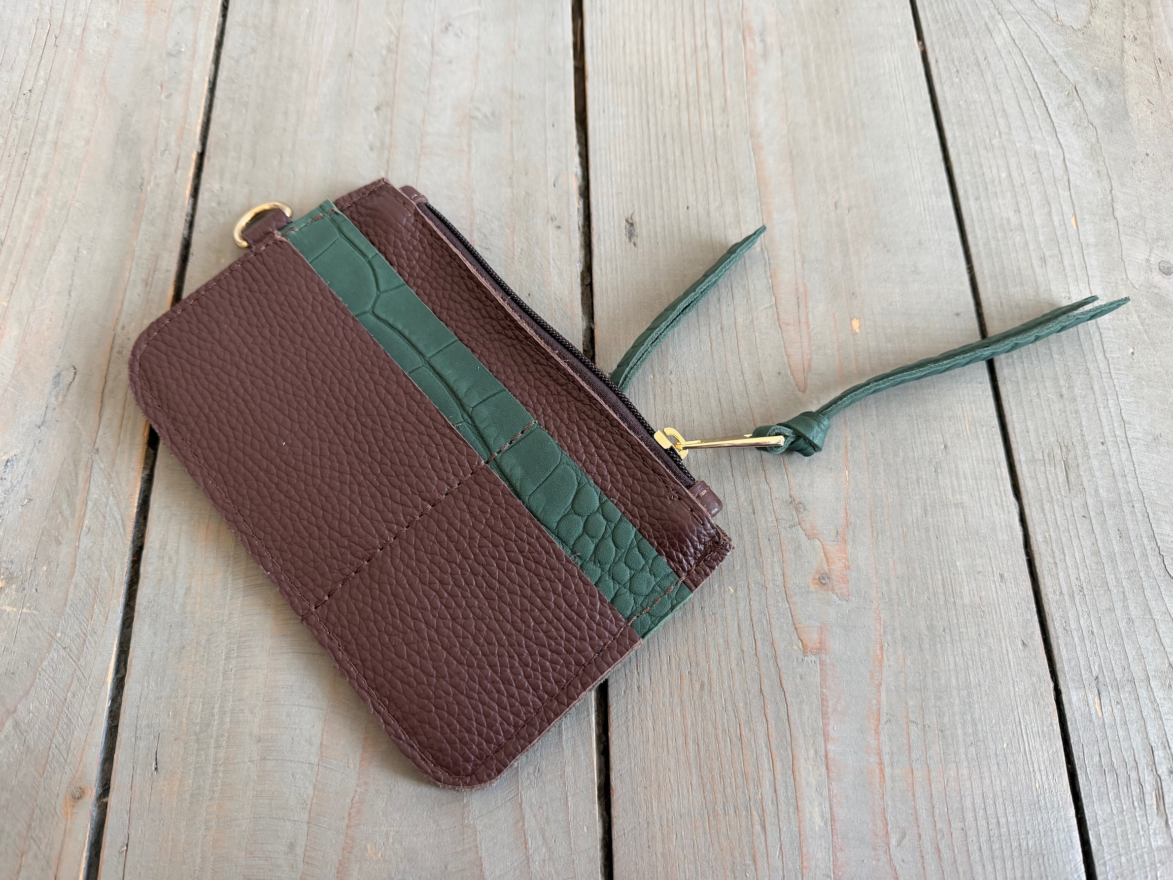 Portfel z kieszonką zamykaną na zamek na banknoty oraz drugą, mniejszą na bilon. Z tyłu kieszonki na karty.