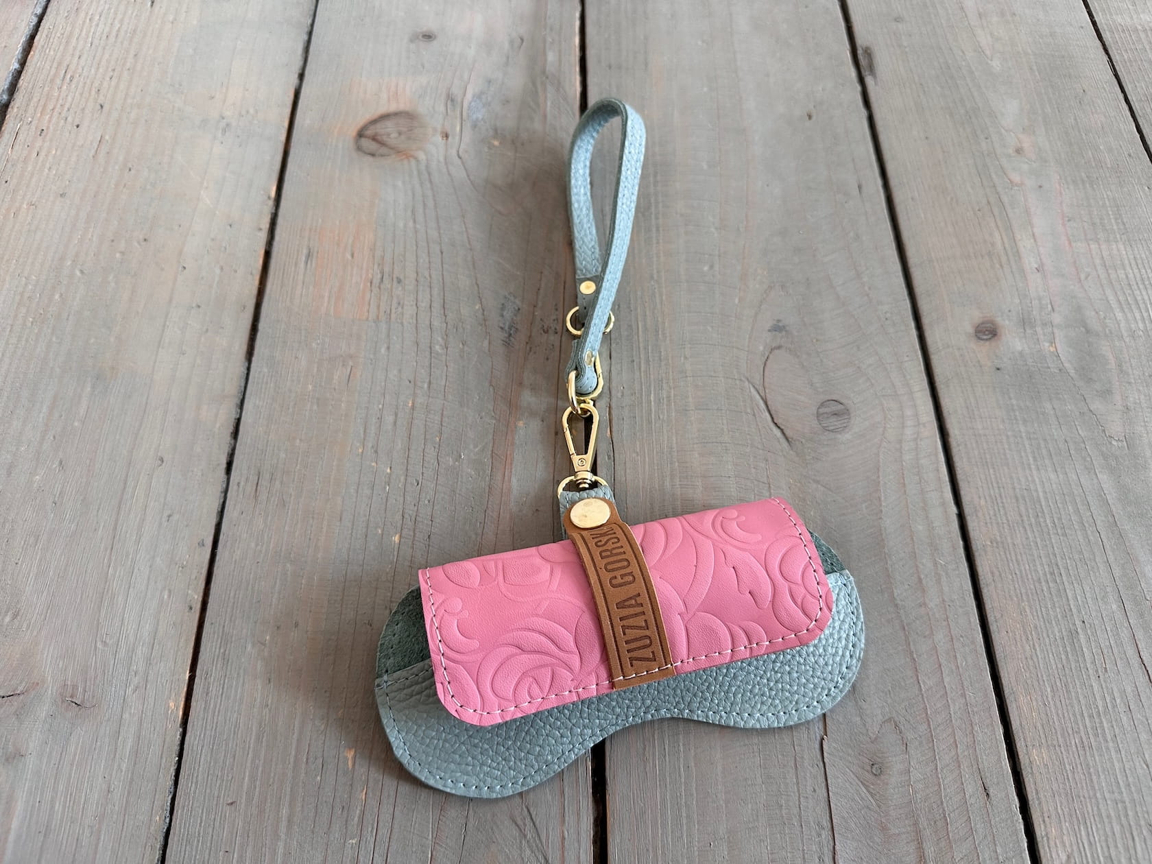 Etui na okulary, zapinane na magnes + zatrzas, ze smyczką z karabińczykiem - można przypiąć karabińczykiem lub za ucho torebki na przykład :)
