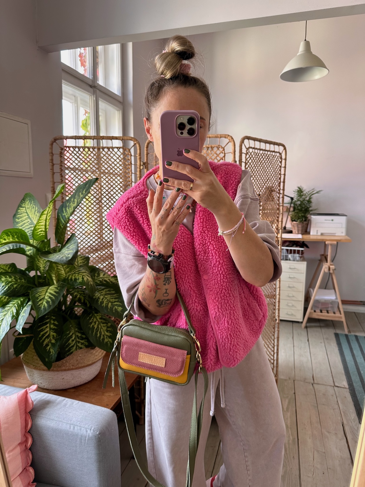 Torebka, która może być noszona przez ramię na skos lub w dłoni.
