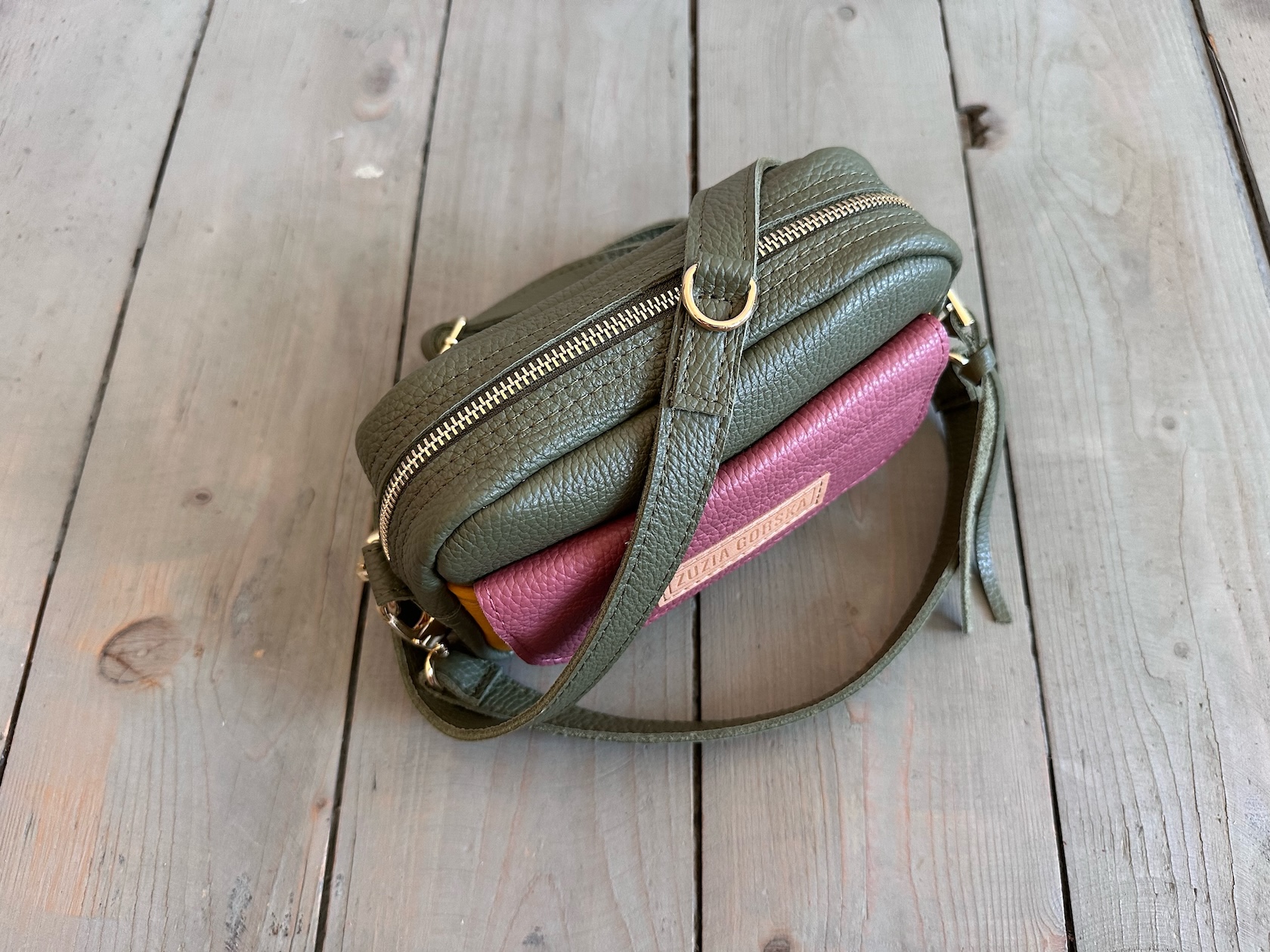 Uszyta ze skór naturalnej licowej.
