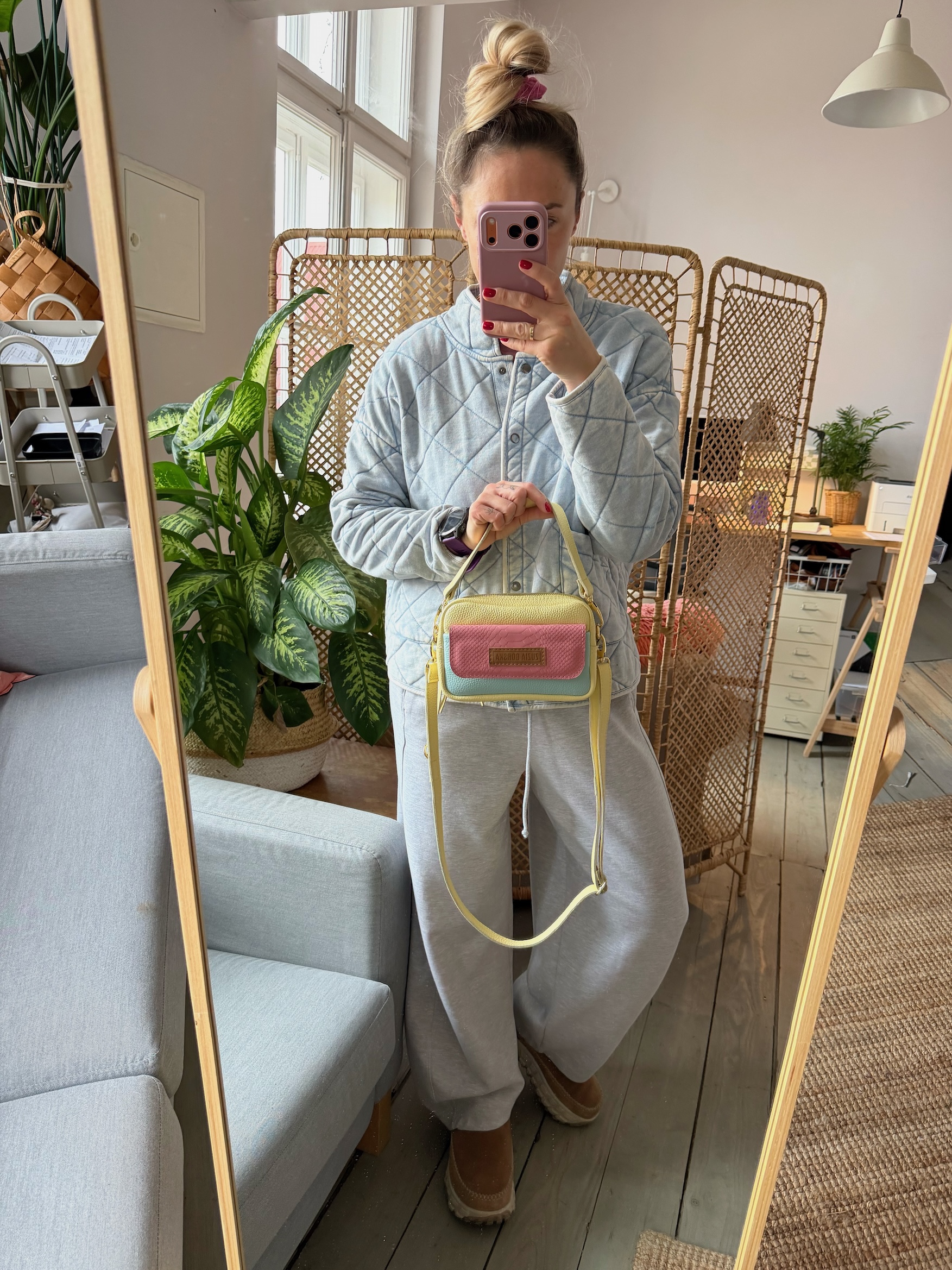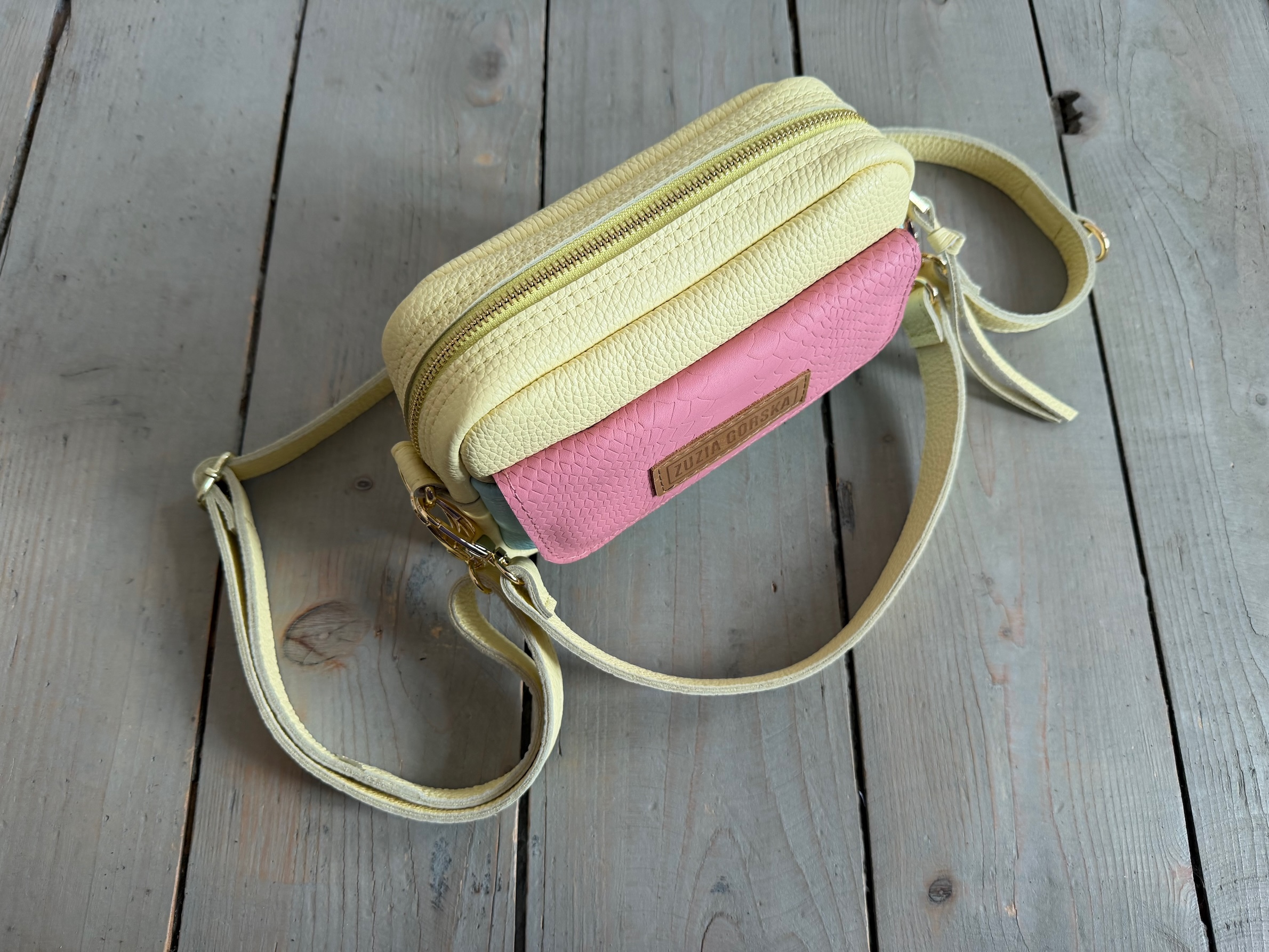 Torebka, która może być noszona przez ramię na skos lub w dłoni.