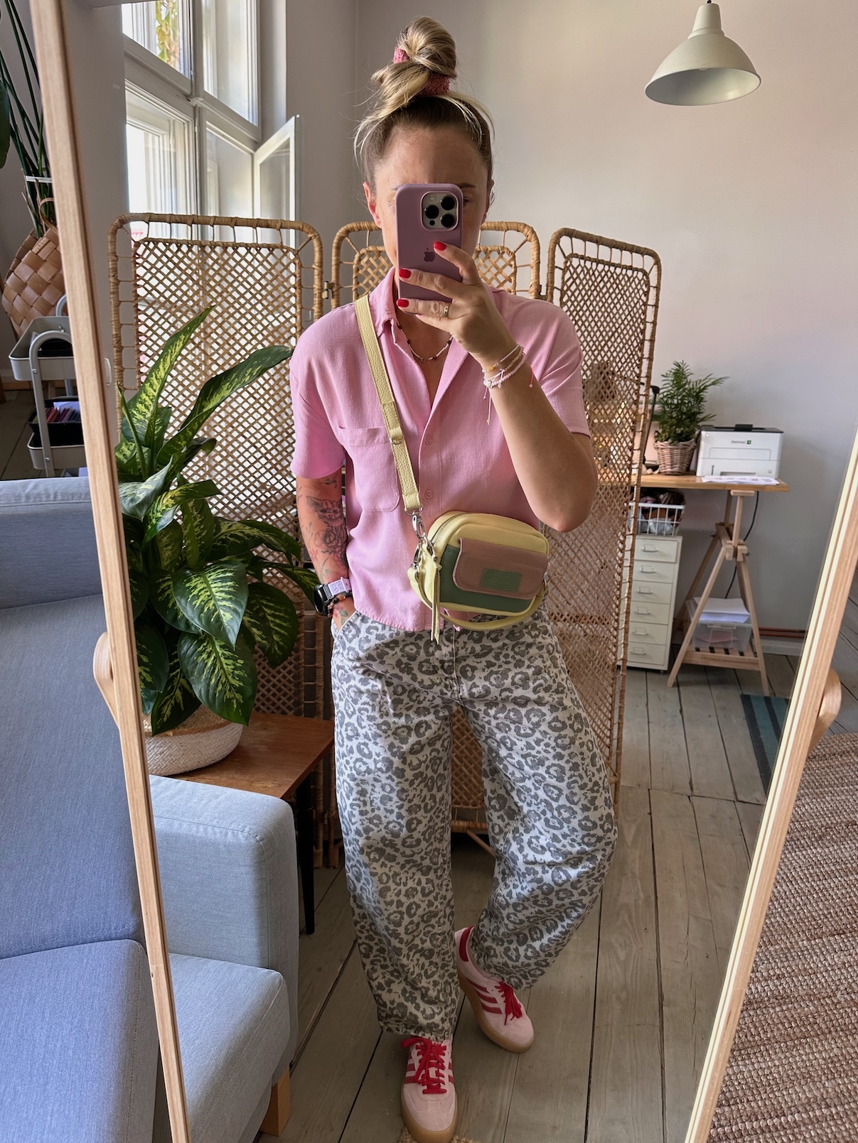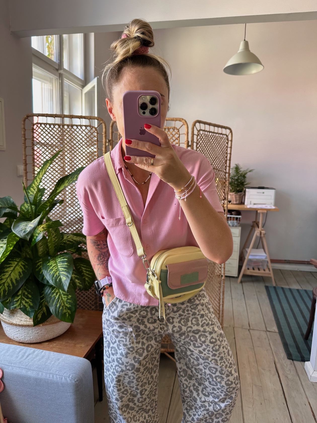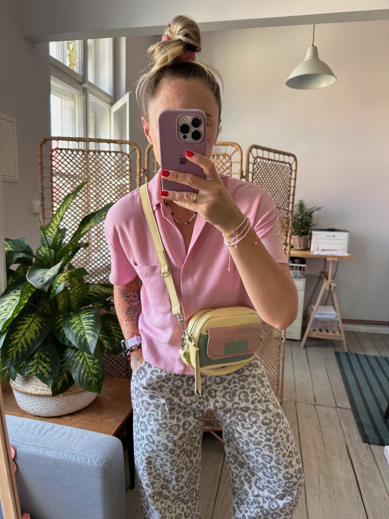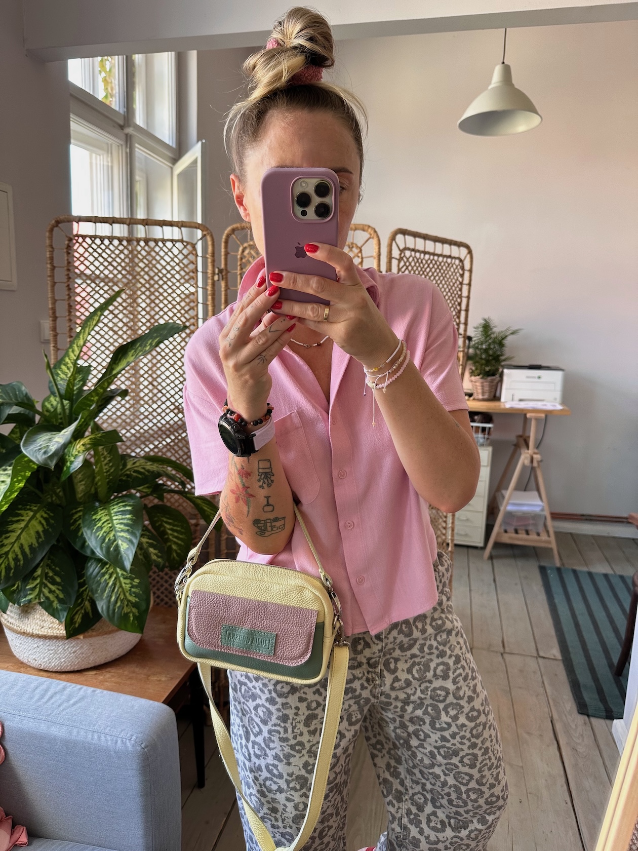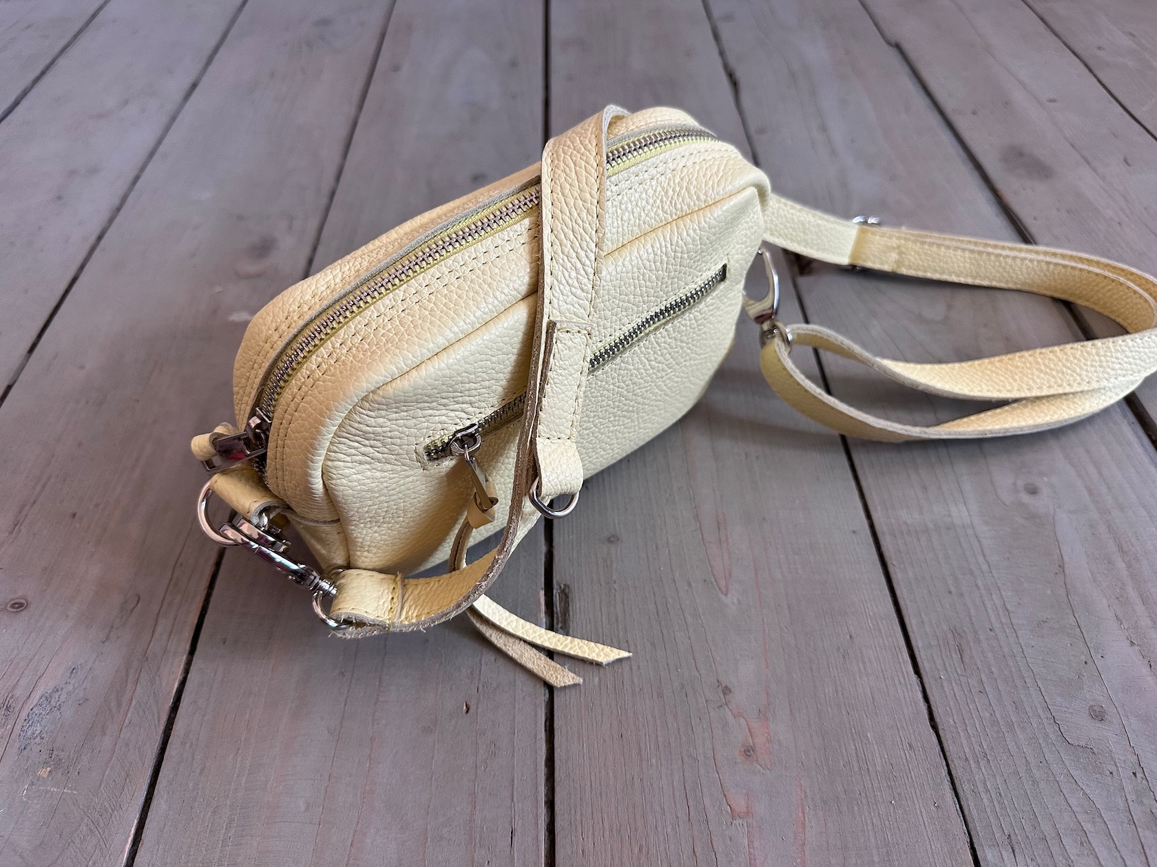 Torebka, która może być noszona przez ramię na skos lub w dłoni.