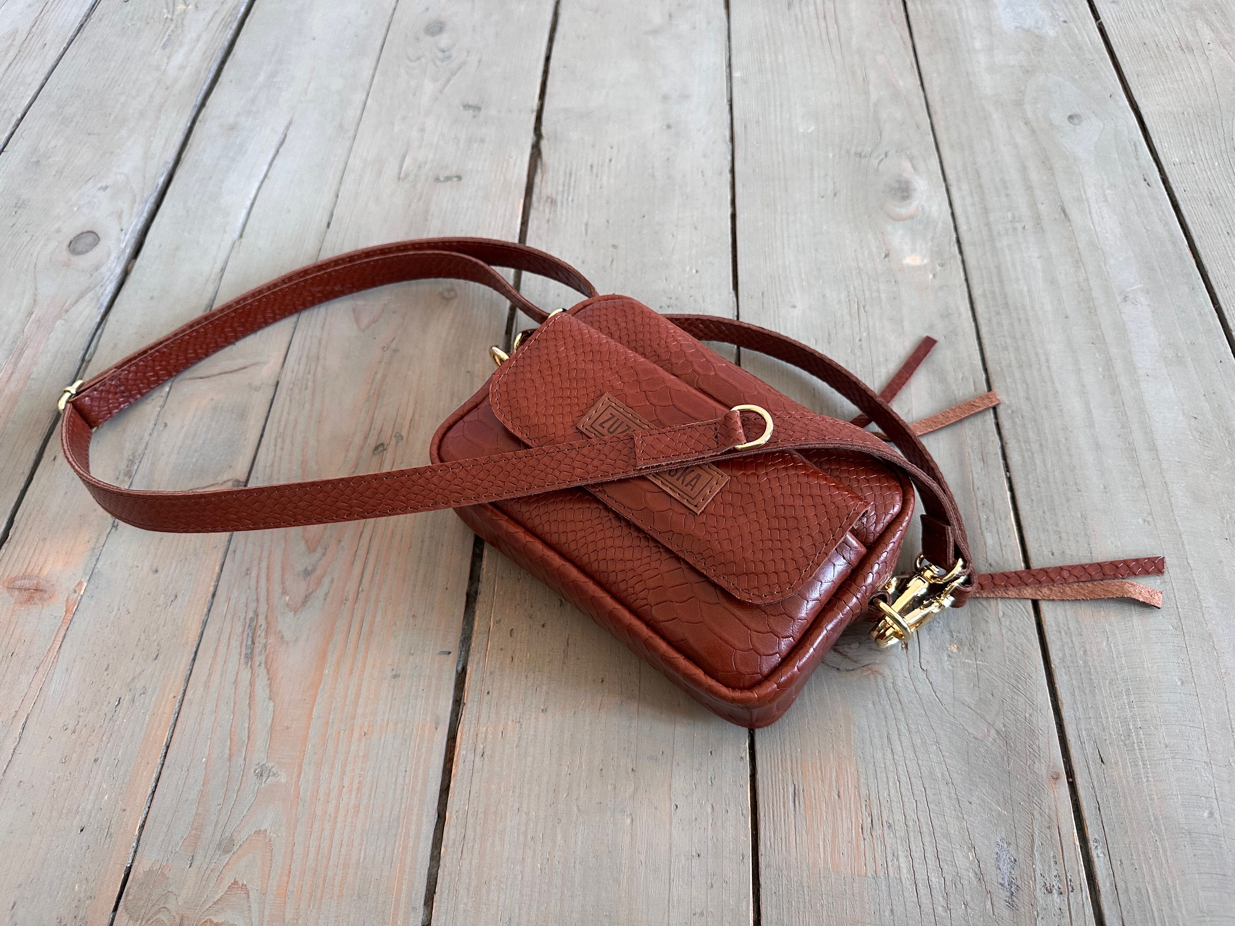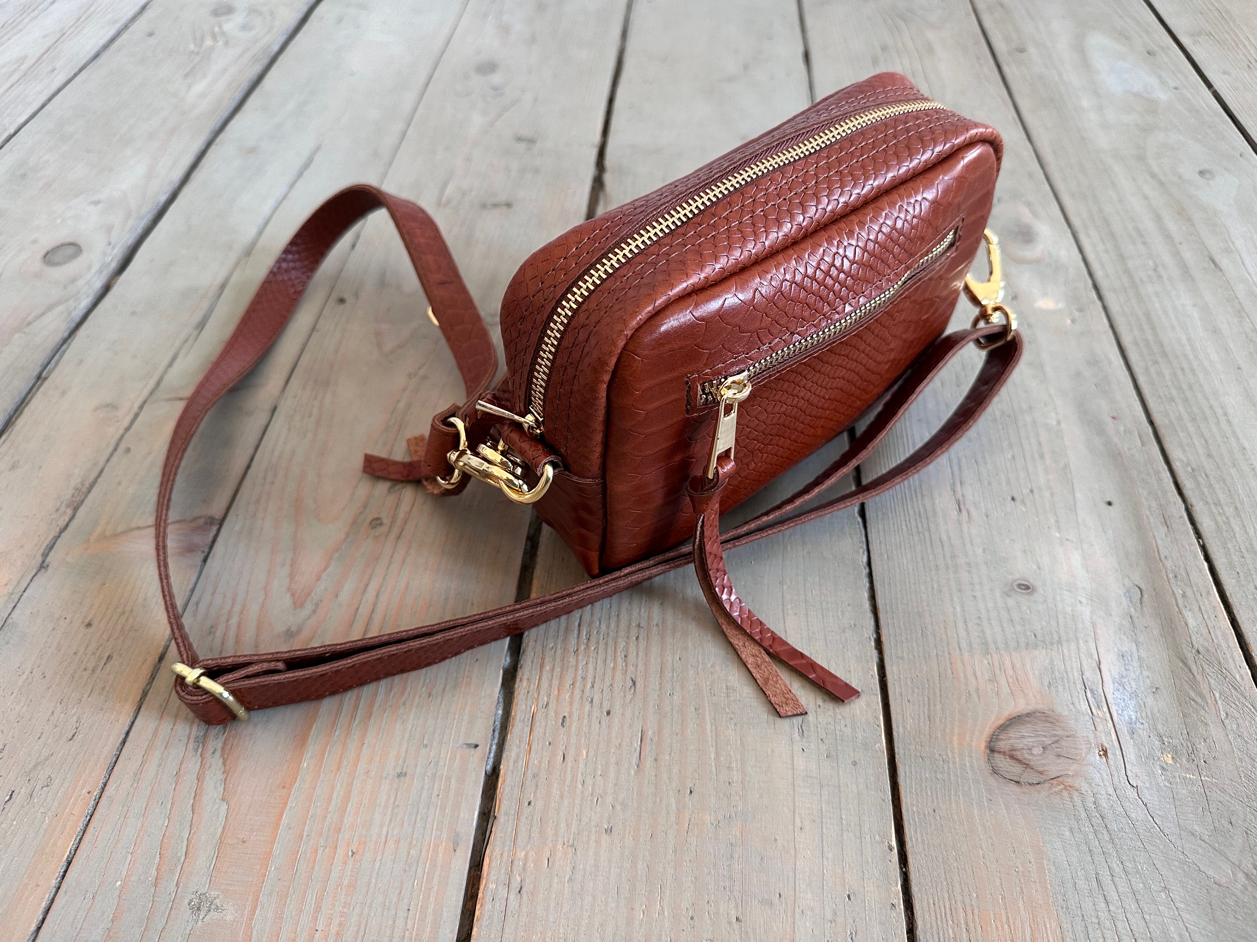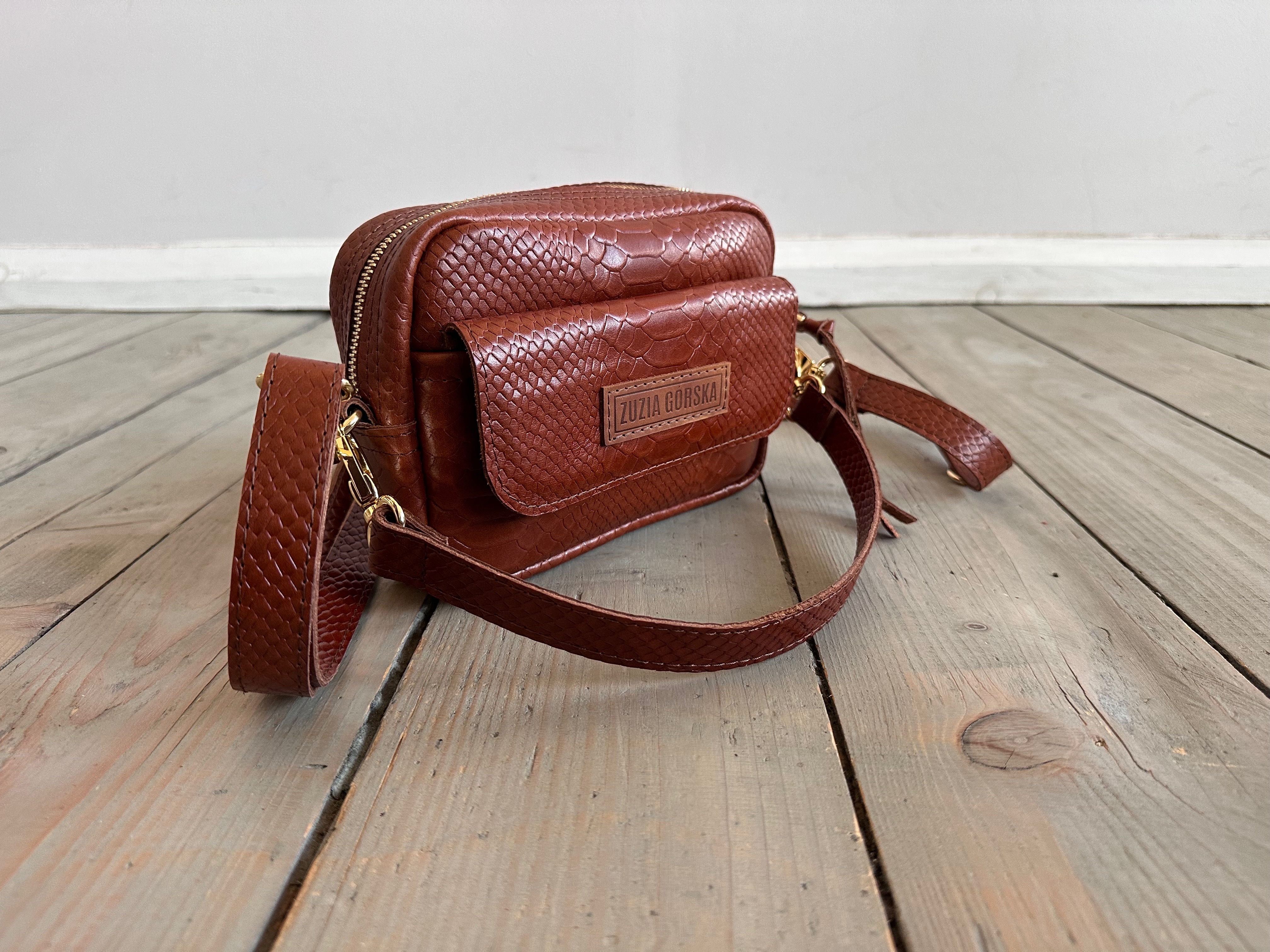 Torebka, która może być noszona przez ramię na skos lub w dłoni.