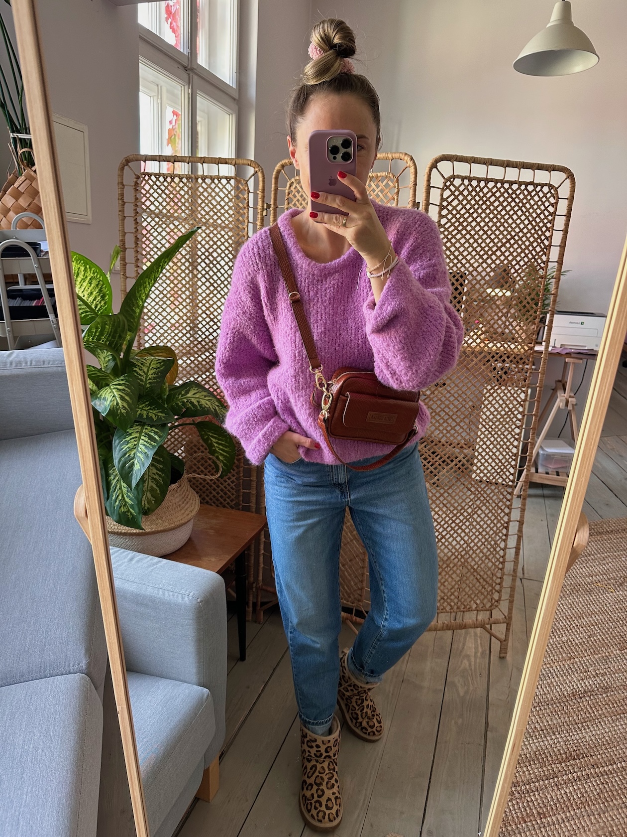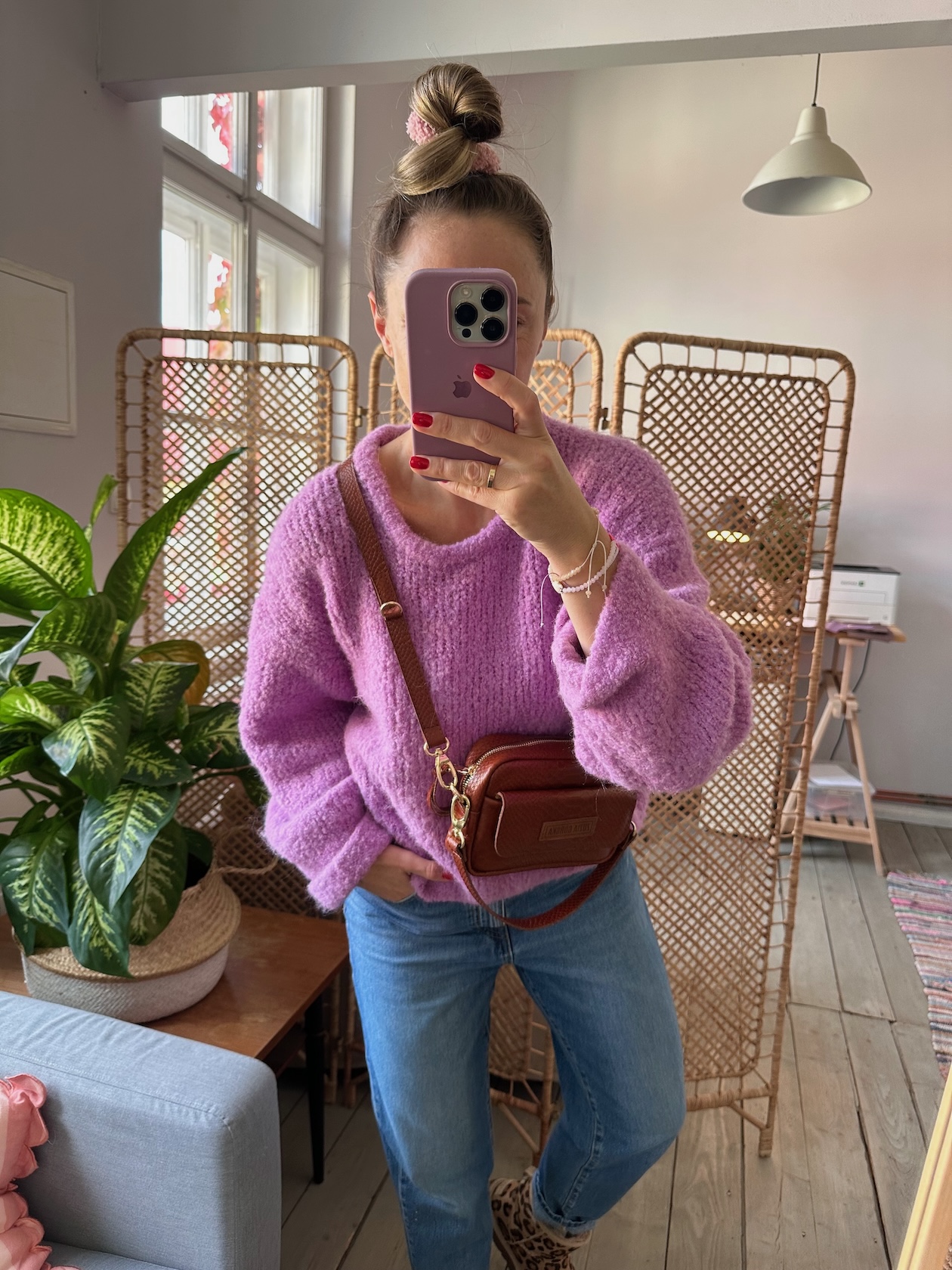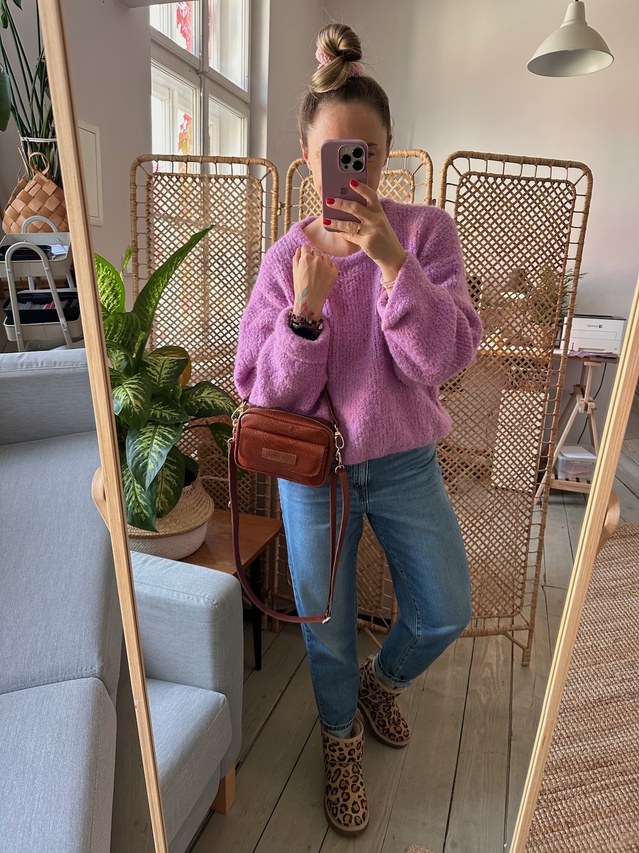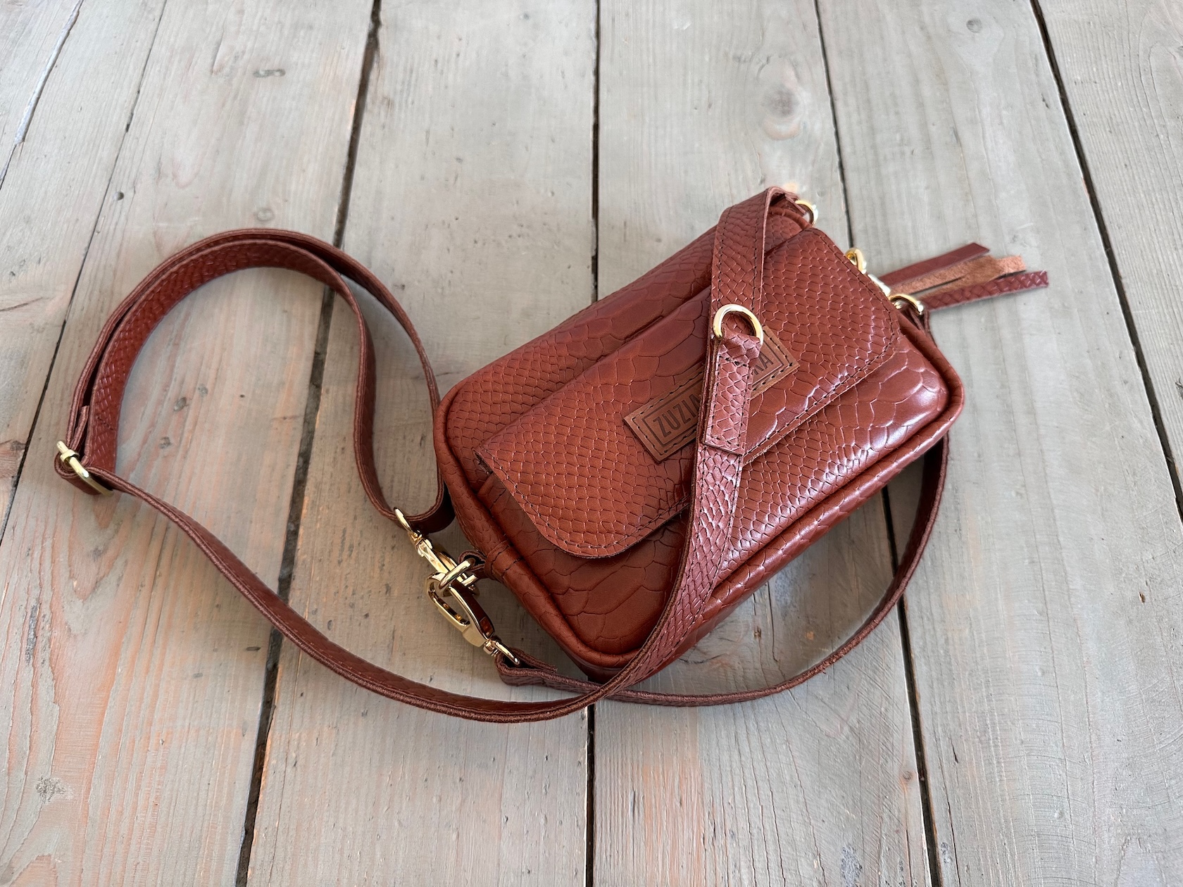 Torebka, która może być noszona przez ramię na skos lub w dłoni.