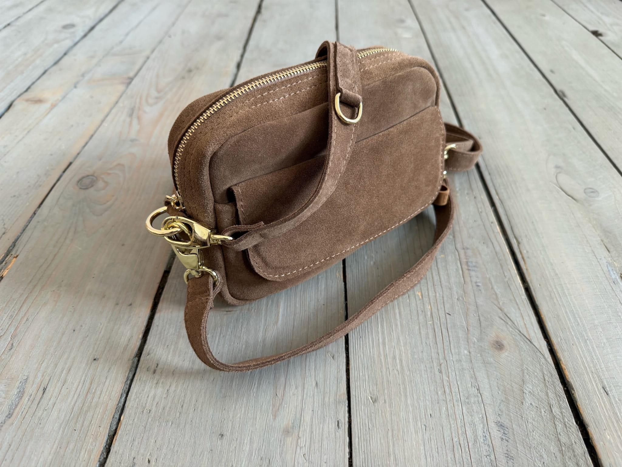 Z tyłu kieszonka na zamek, z przodu kiszona pod klapką, wewnątrz przegródka + smyczka z karabińczykiem.