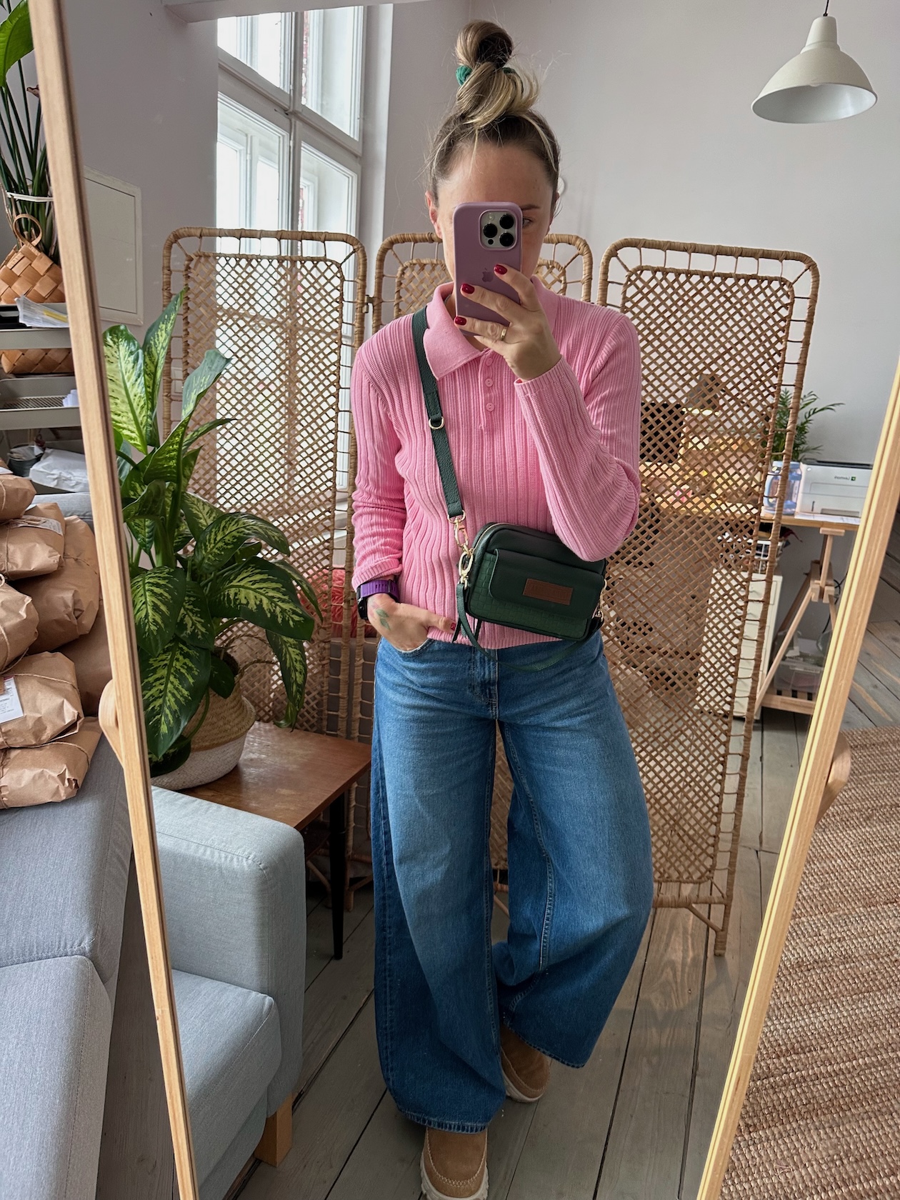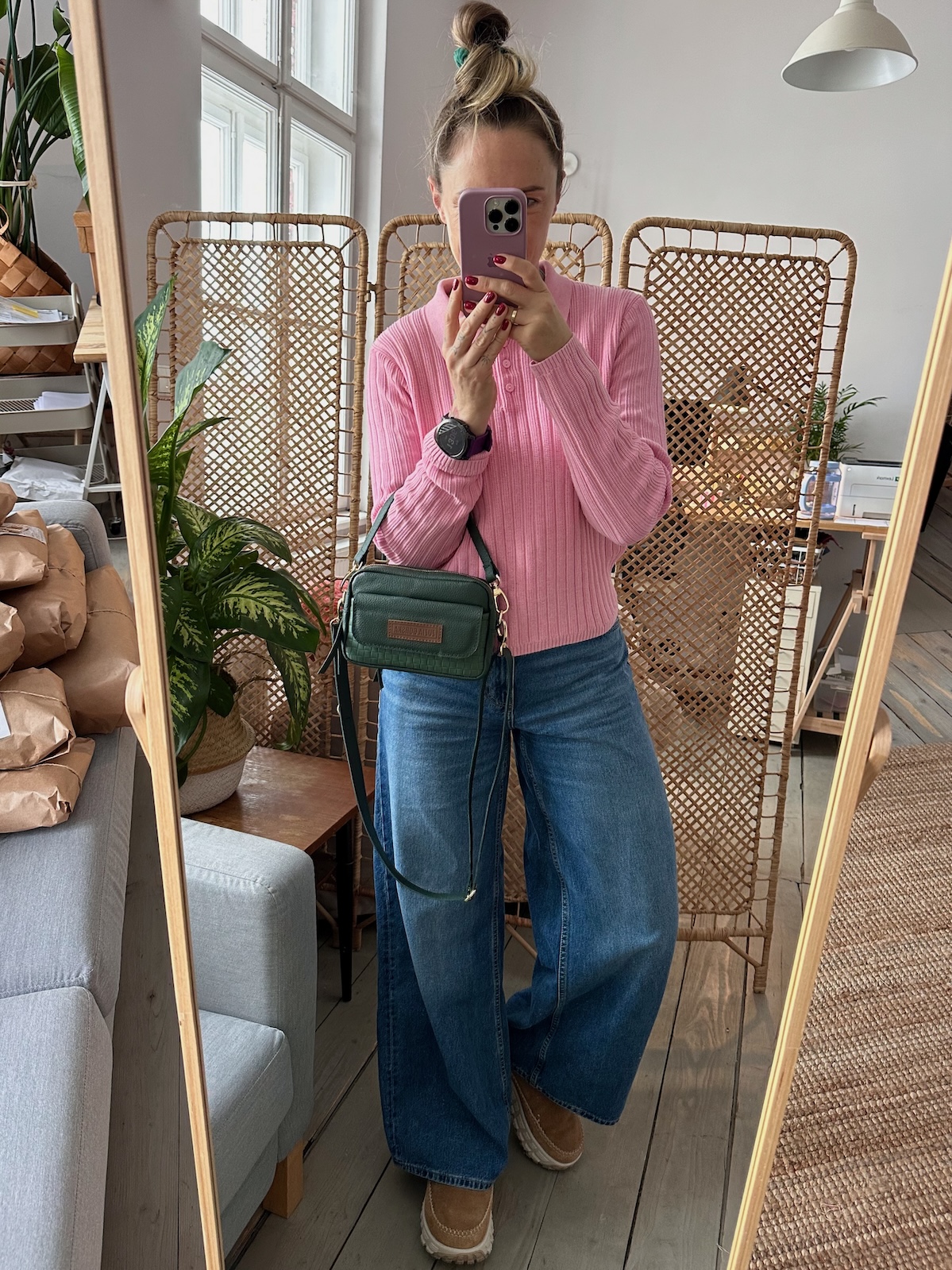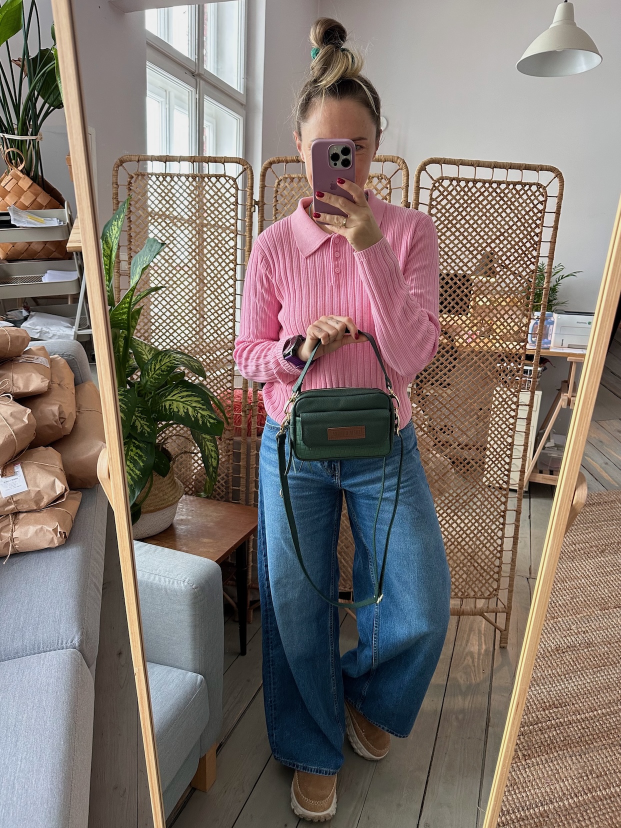 Torebka, która może być noszona przez ramię na skos lub w dłoni.