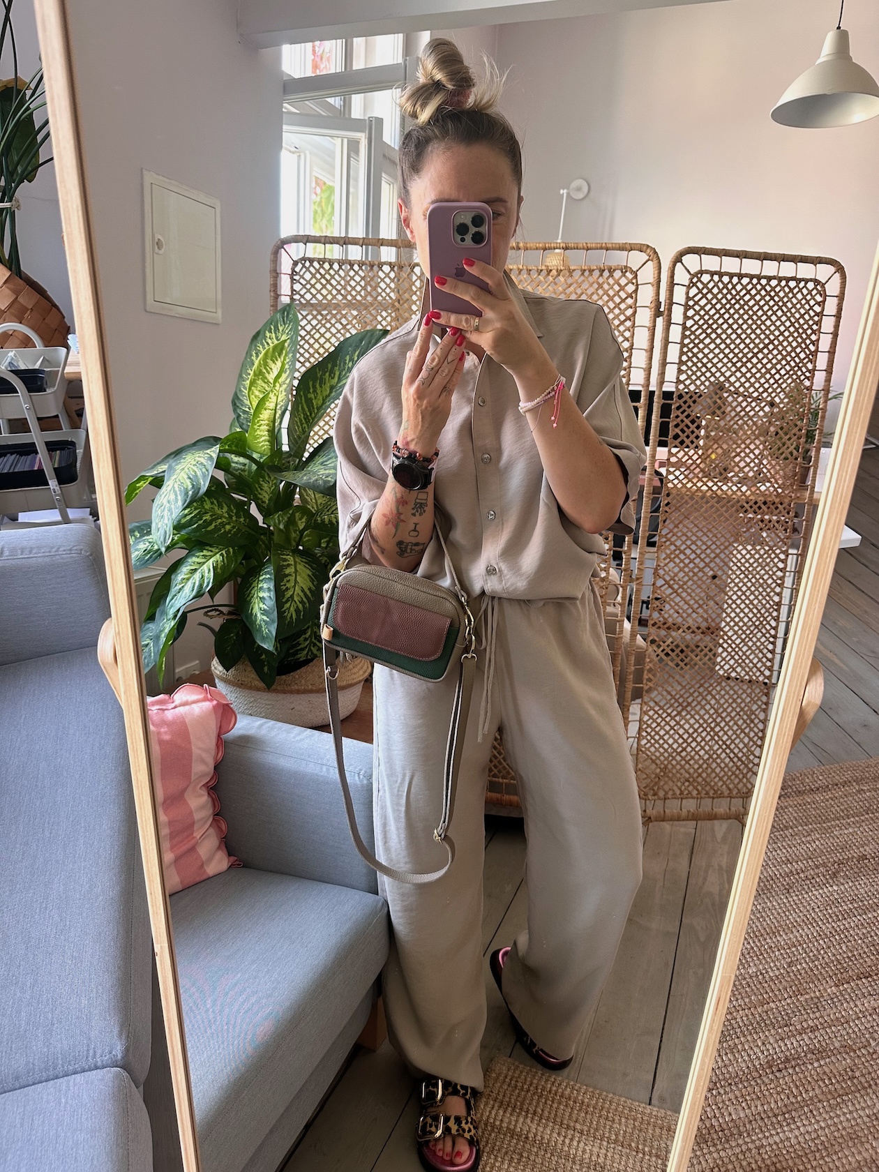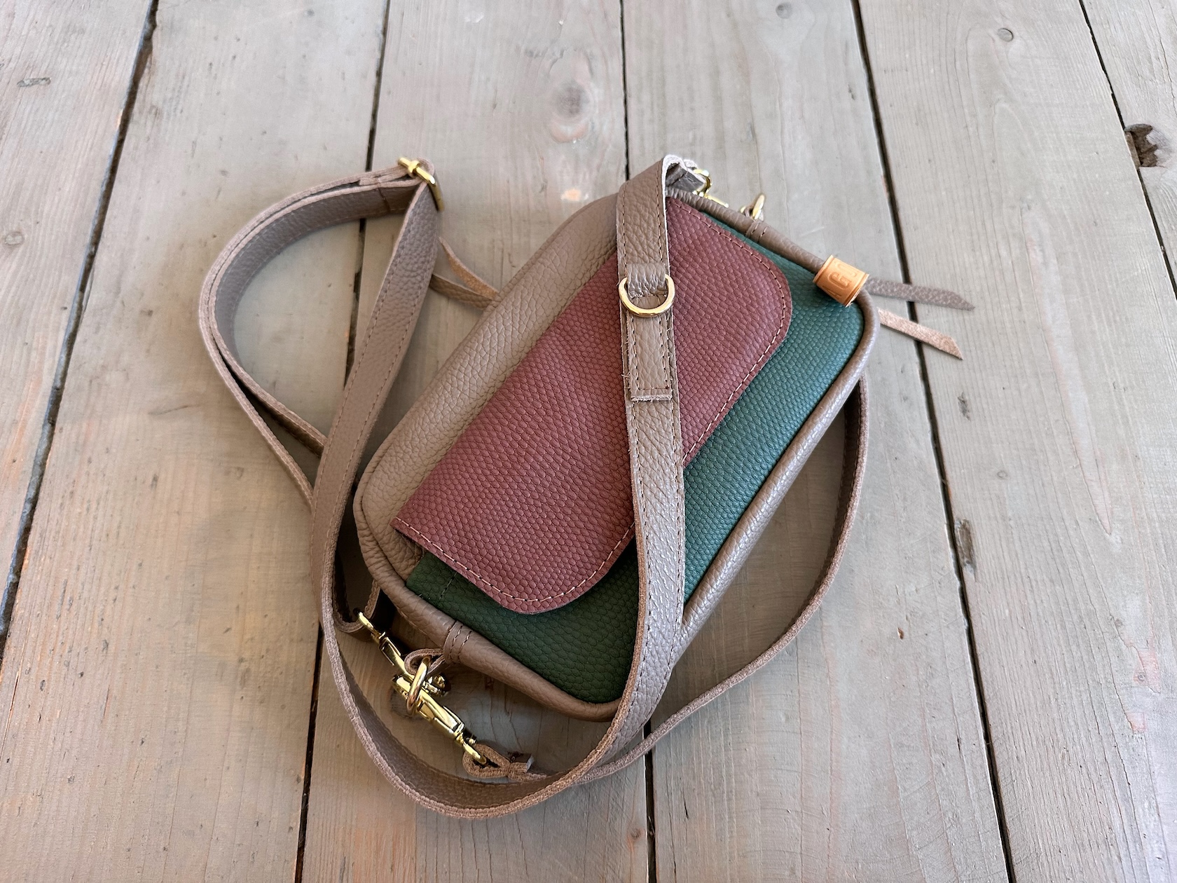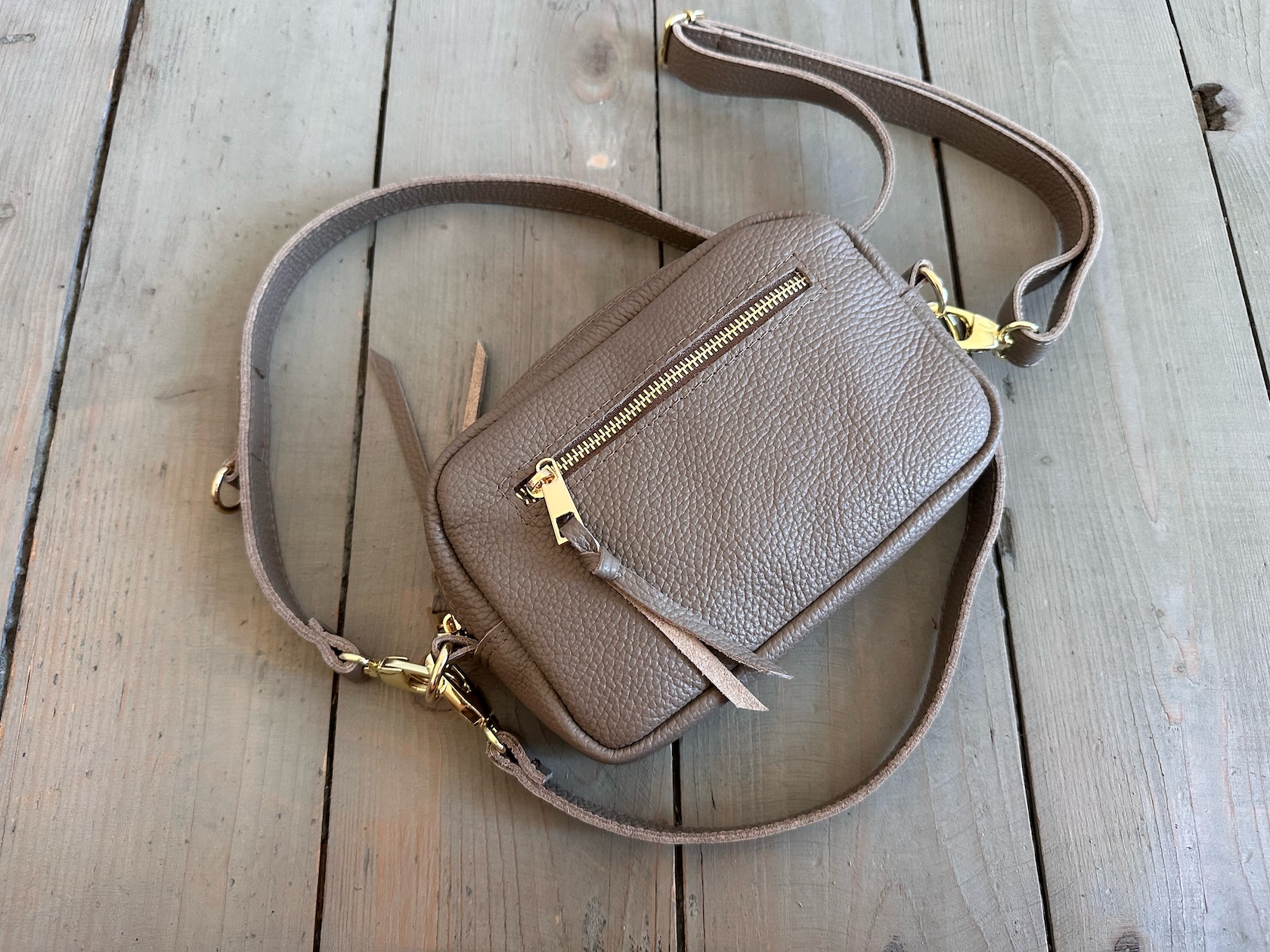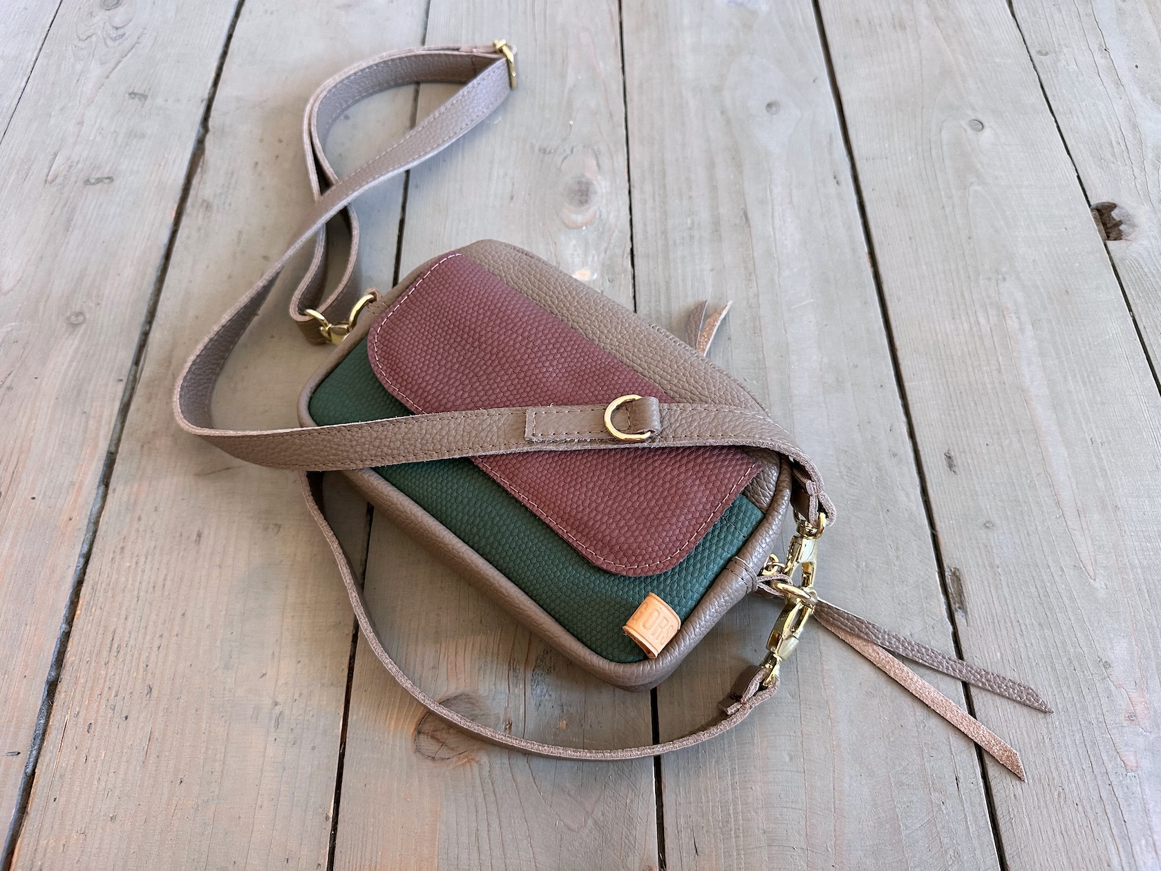 Torebka, która może być noszona przez ramię na skos lub w dłoni.