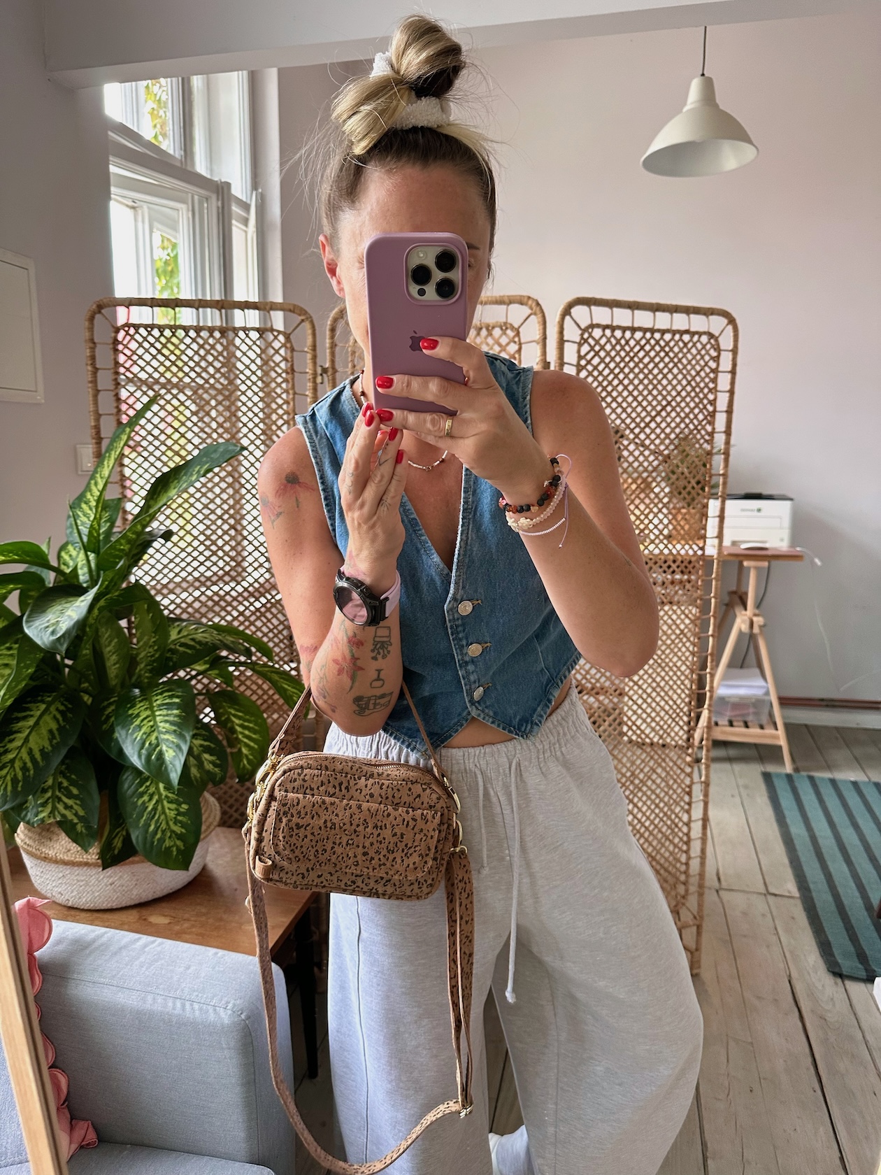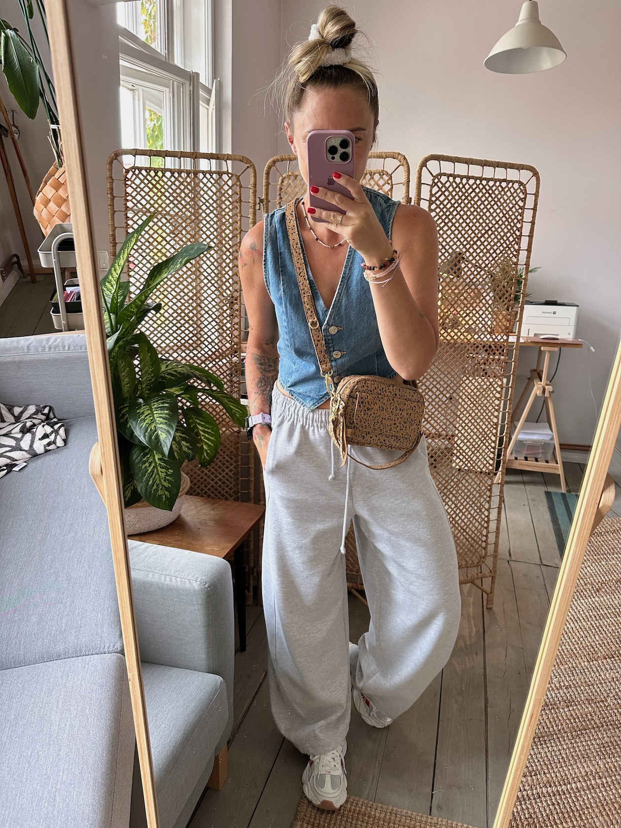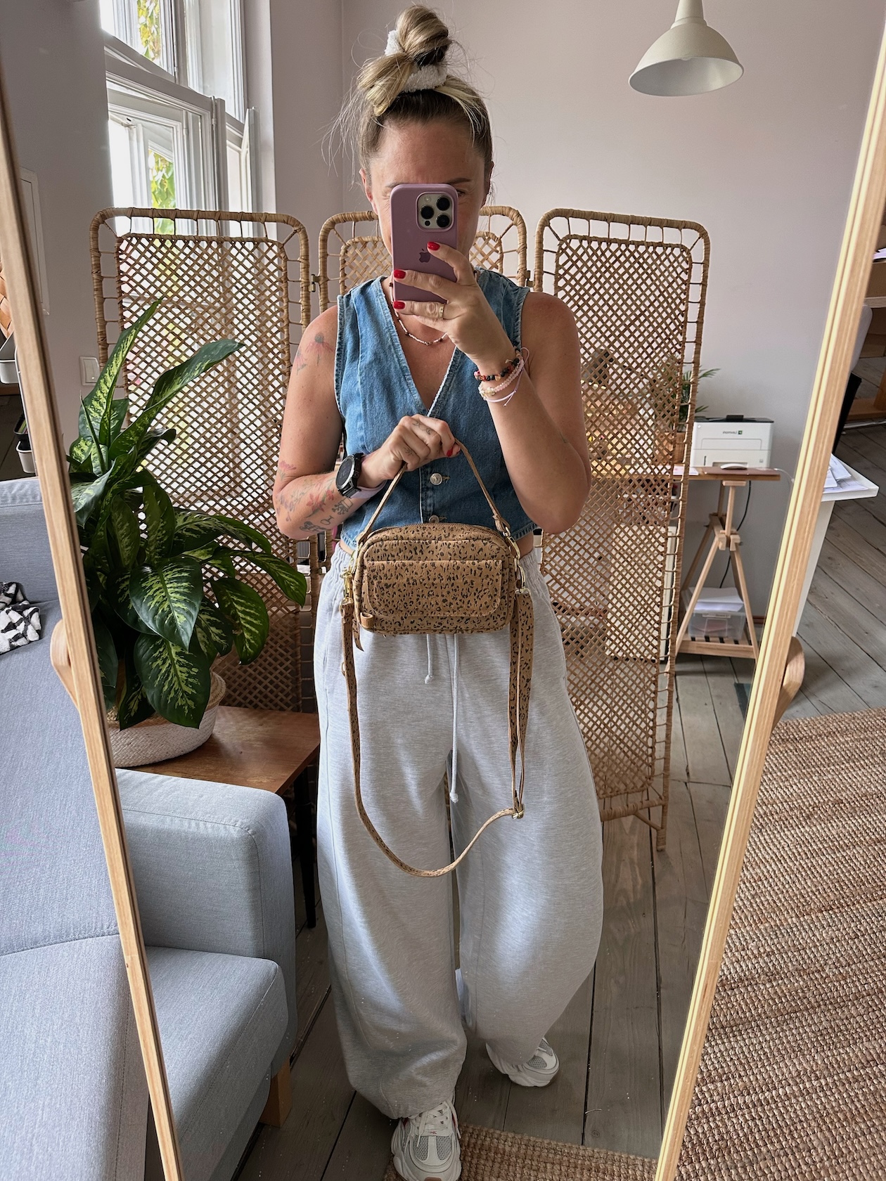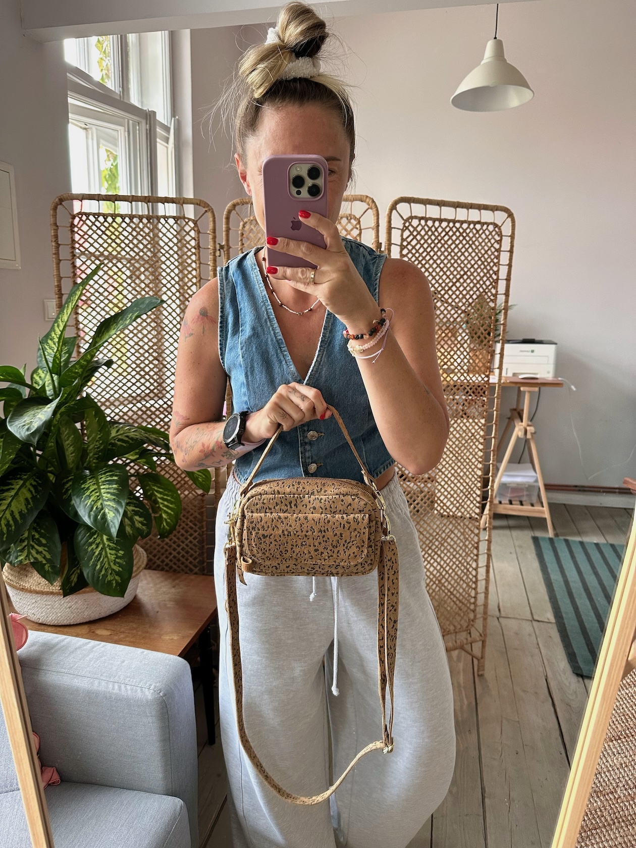 Uszyta ze skóry naturalnej welurowej.