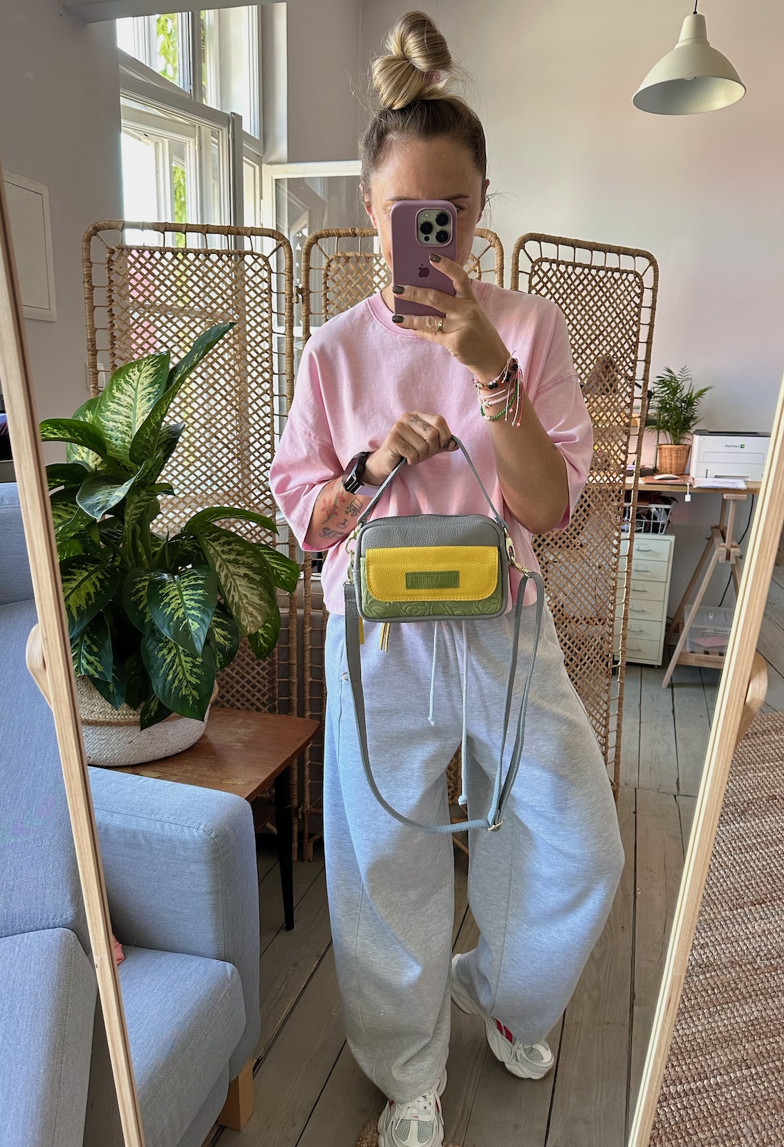 Torebka, która może być noszona przez ramię na skos lub w dłoni.