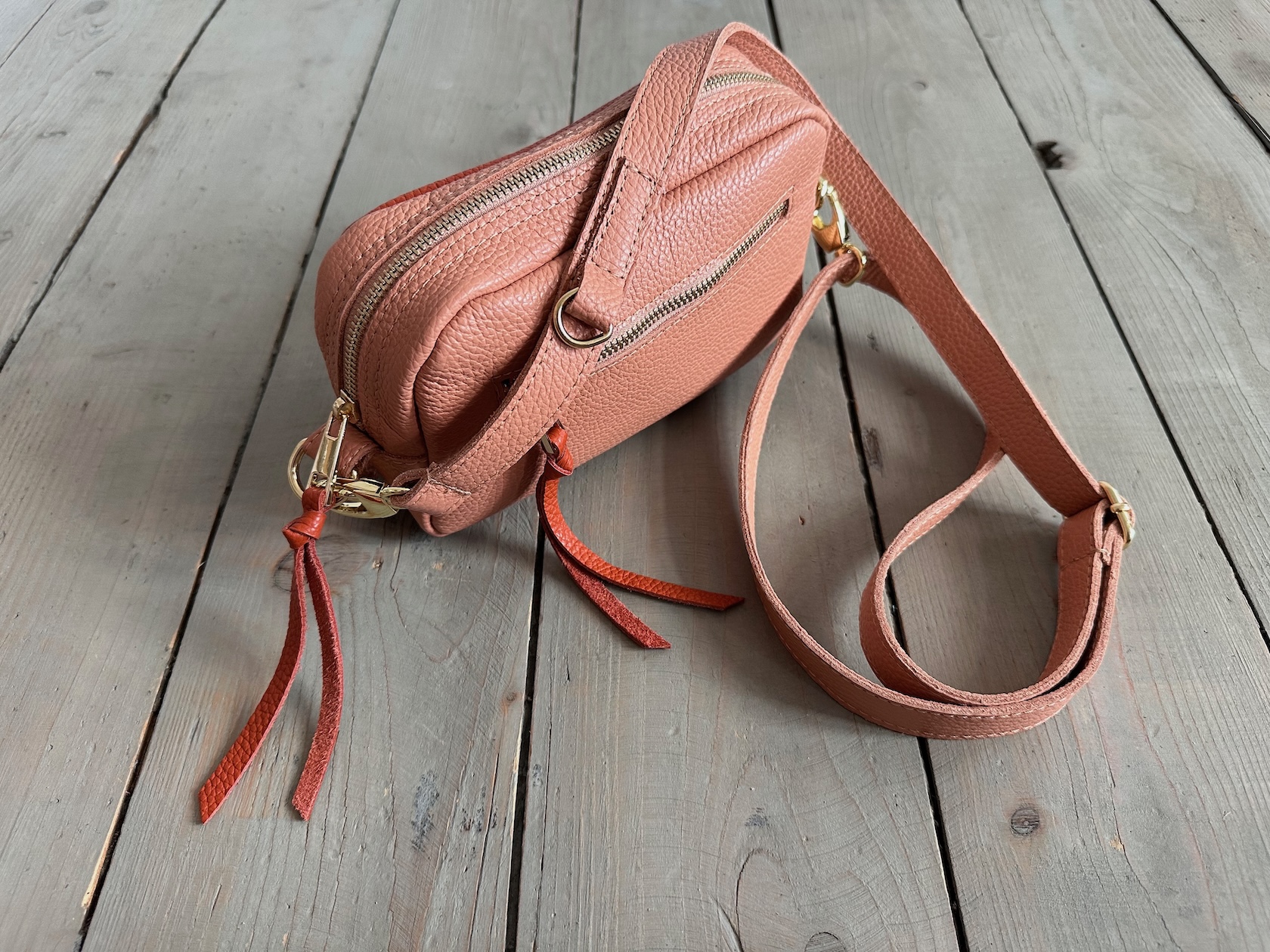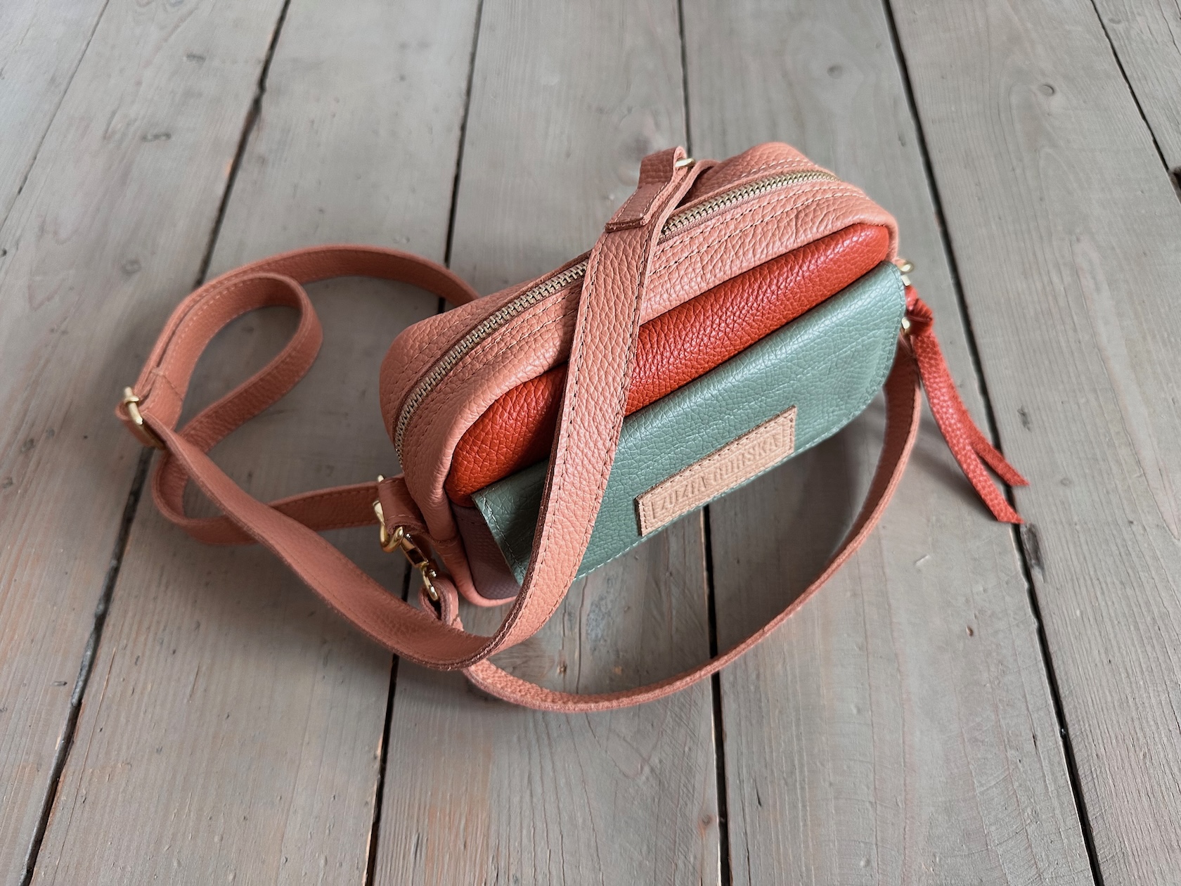 Torebka, która może być noszona przez ramię na skos lub w dłoni.