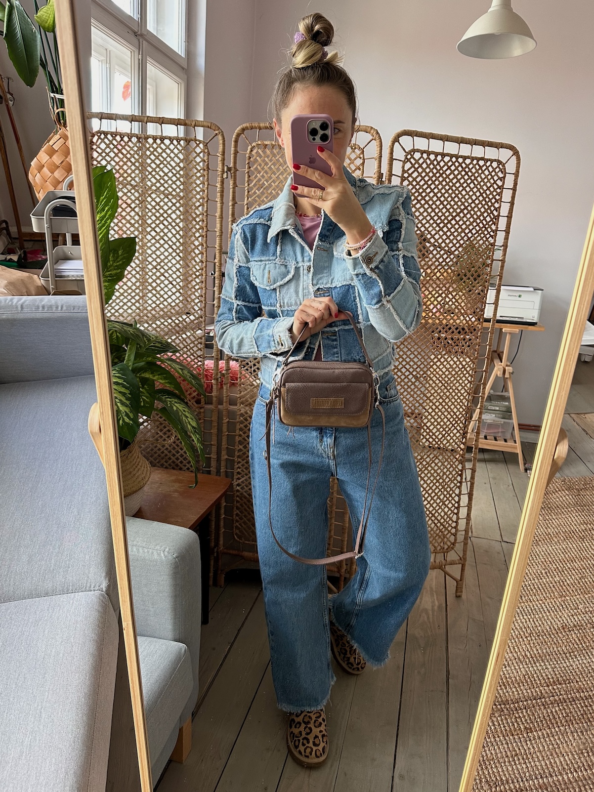 Torebka, która może być noszona przez ramię na skos lub w dłoni.