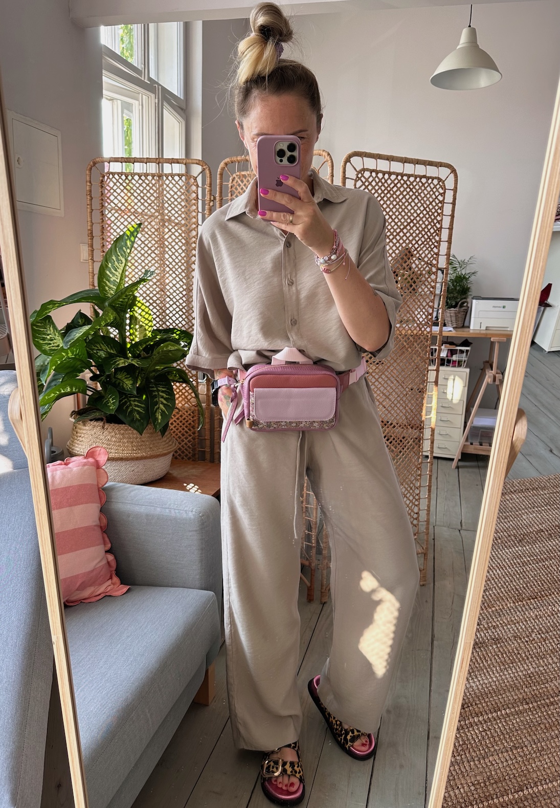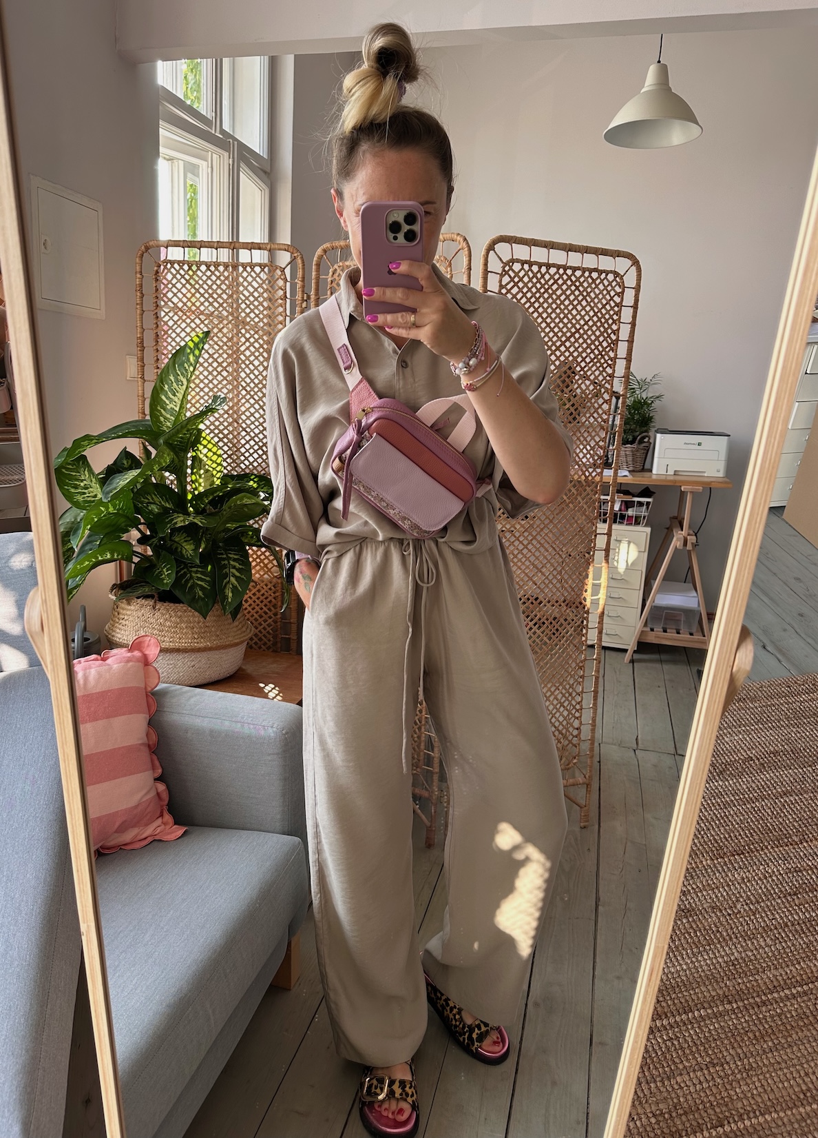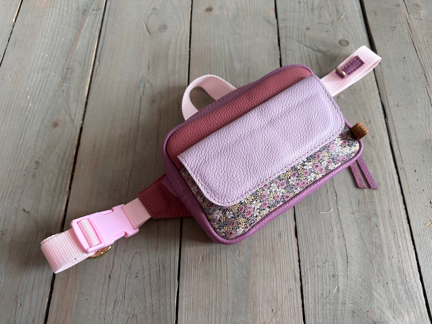 Z tyłu kieszonka na zamek, z przodu kiszona pod klapką, wewnątrz przegródka + smyczka z karabińczykiem.