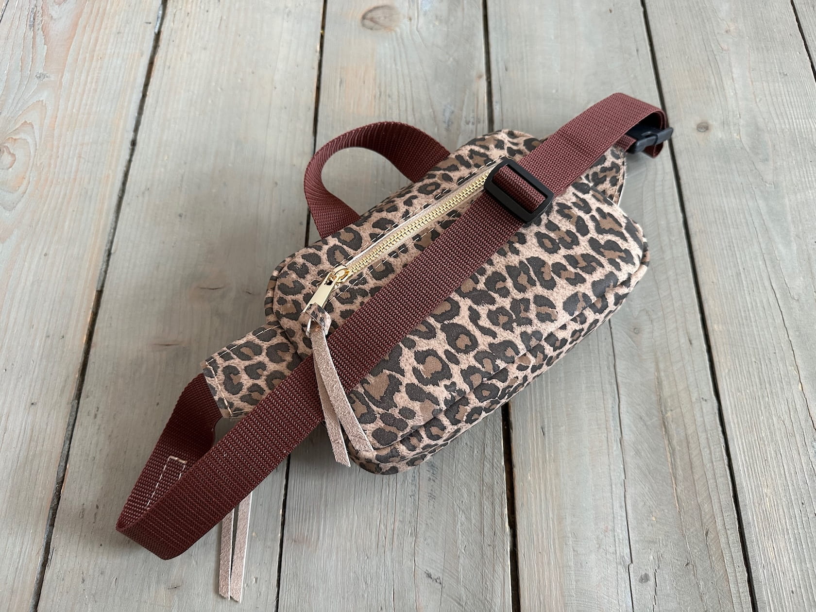 Uszyta ze skór naturalnych nubukowej + poliestrowej taśmy.