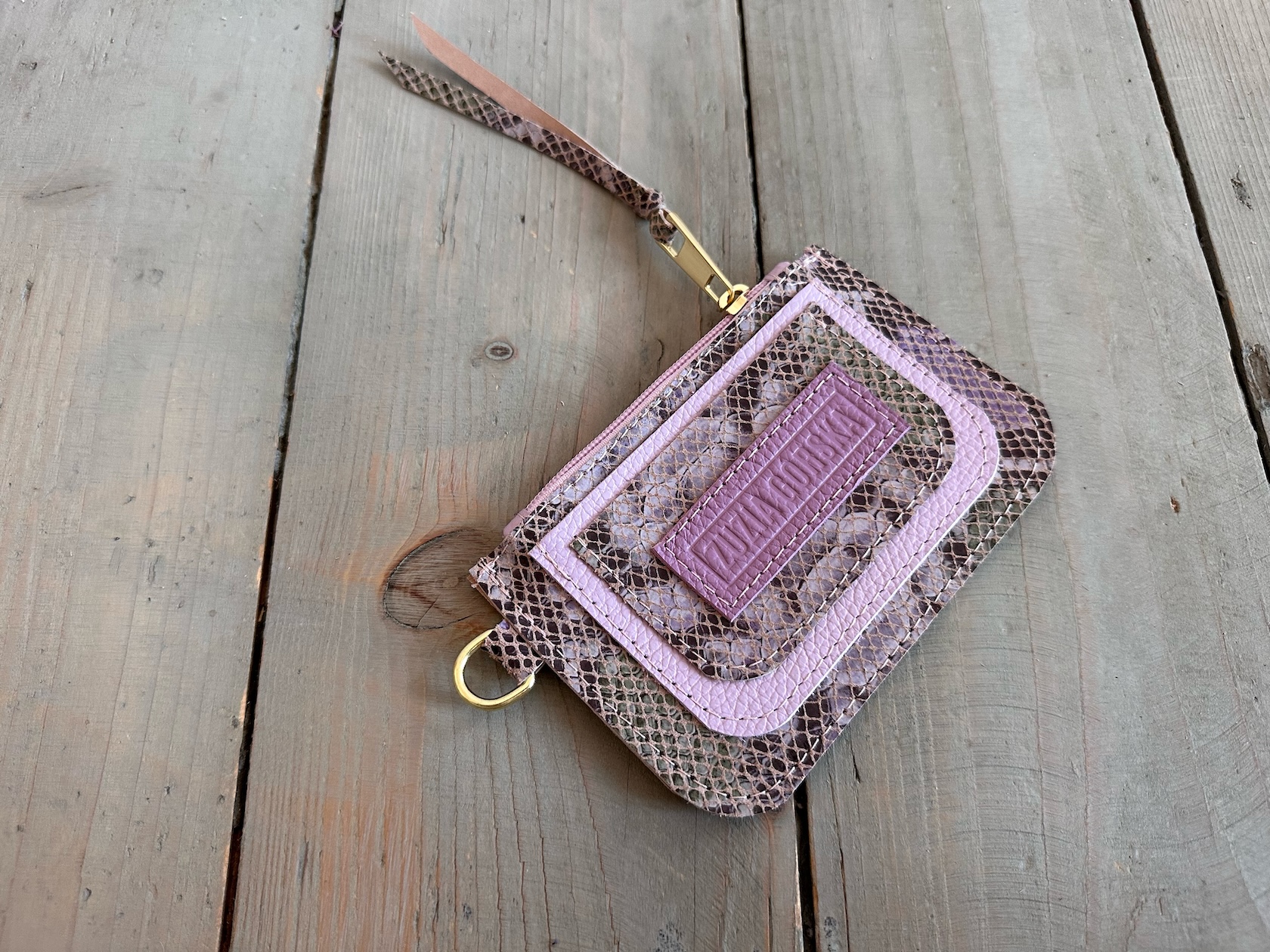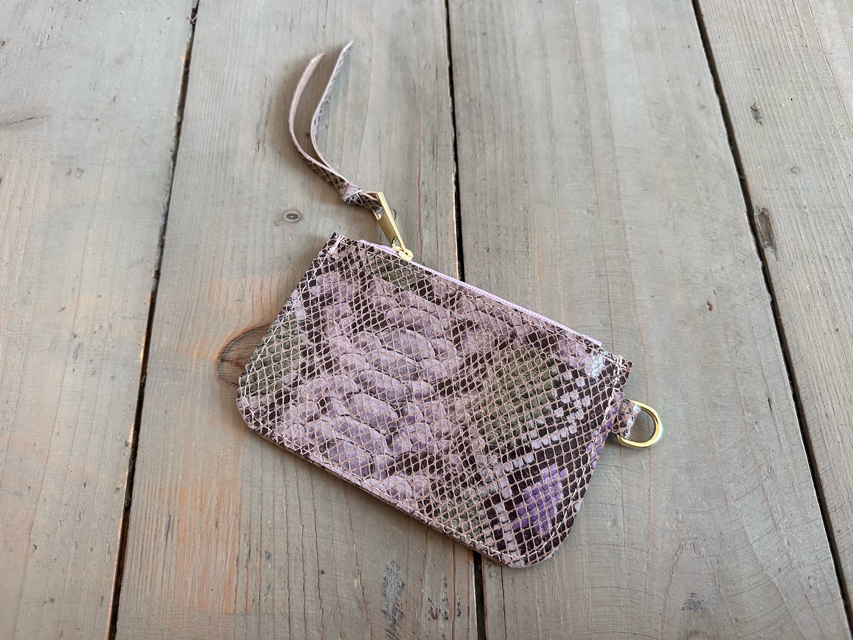 Niewielki portfelik, z kieszonką zamykaną na zamek na monety i banknoty, z dwiema kieszonkami na przodzie - mniejszą i większą, oraz jedną z tyłu.