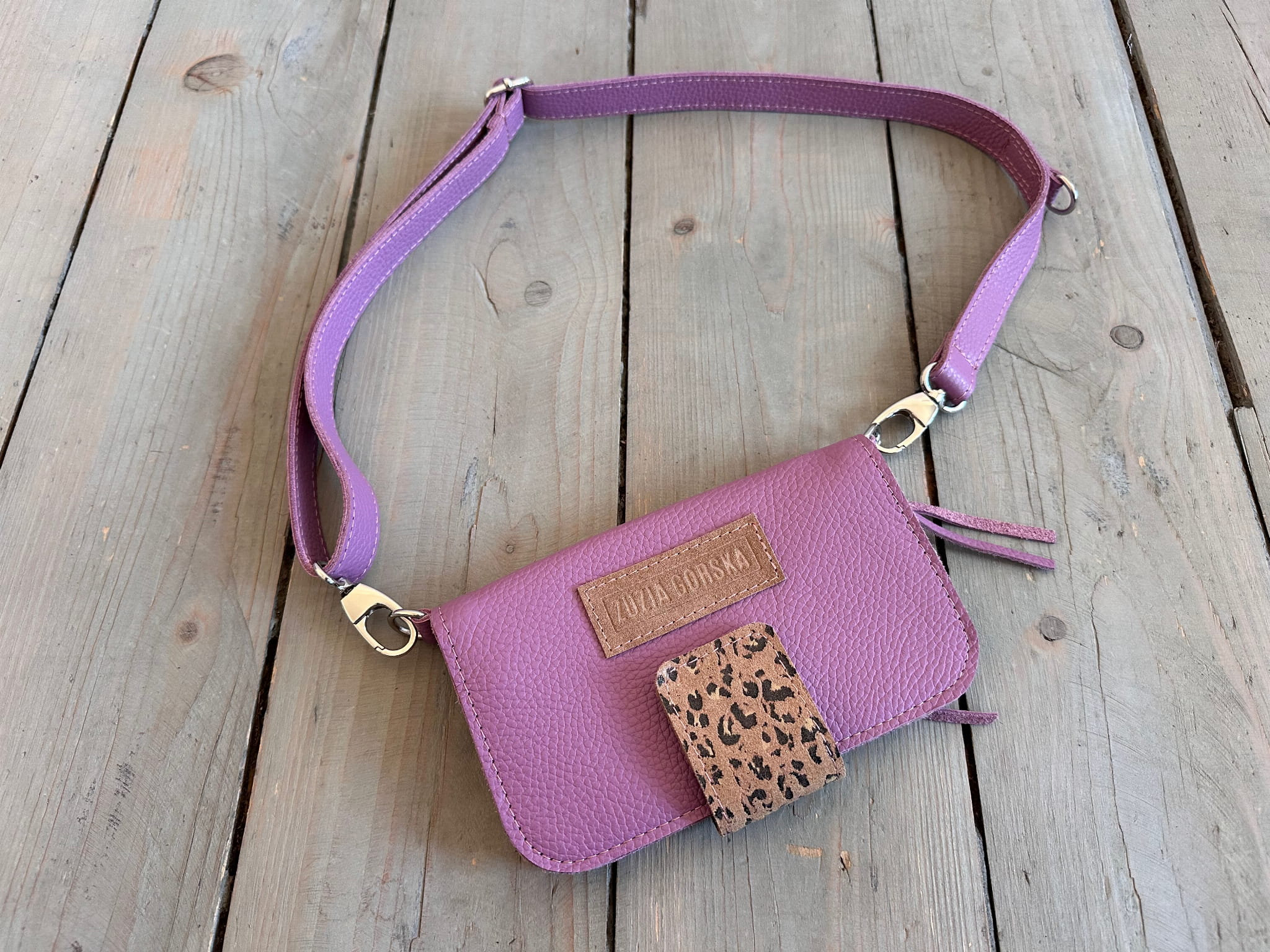 Uszyta ze skór naturalnych - licowych, welurowych, nubukowych.