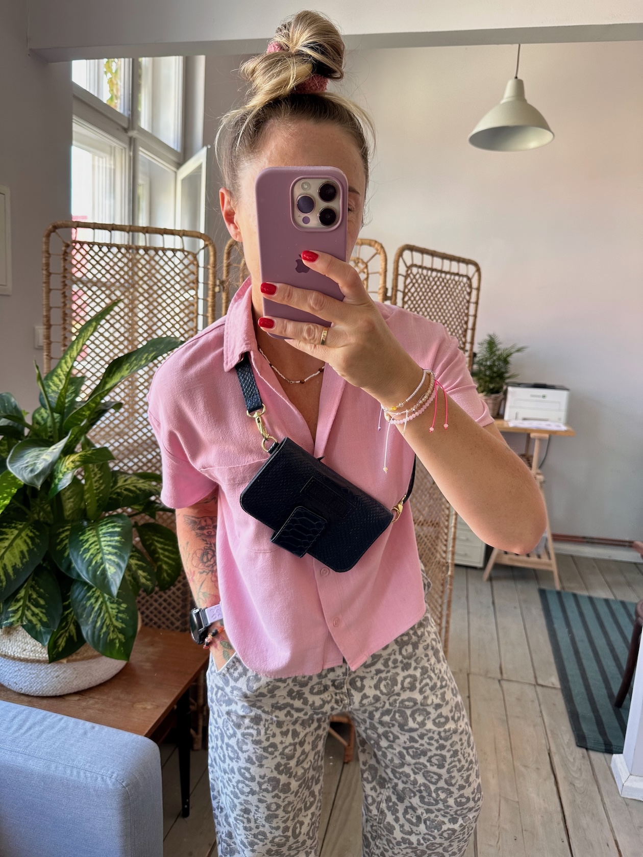 Pasek regulowany, odpinany, z kółeczkiem na okulary.