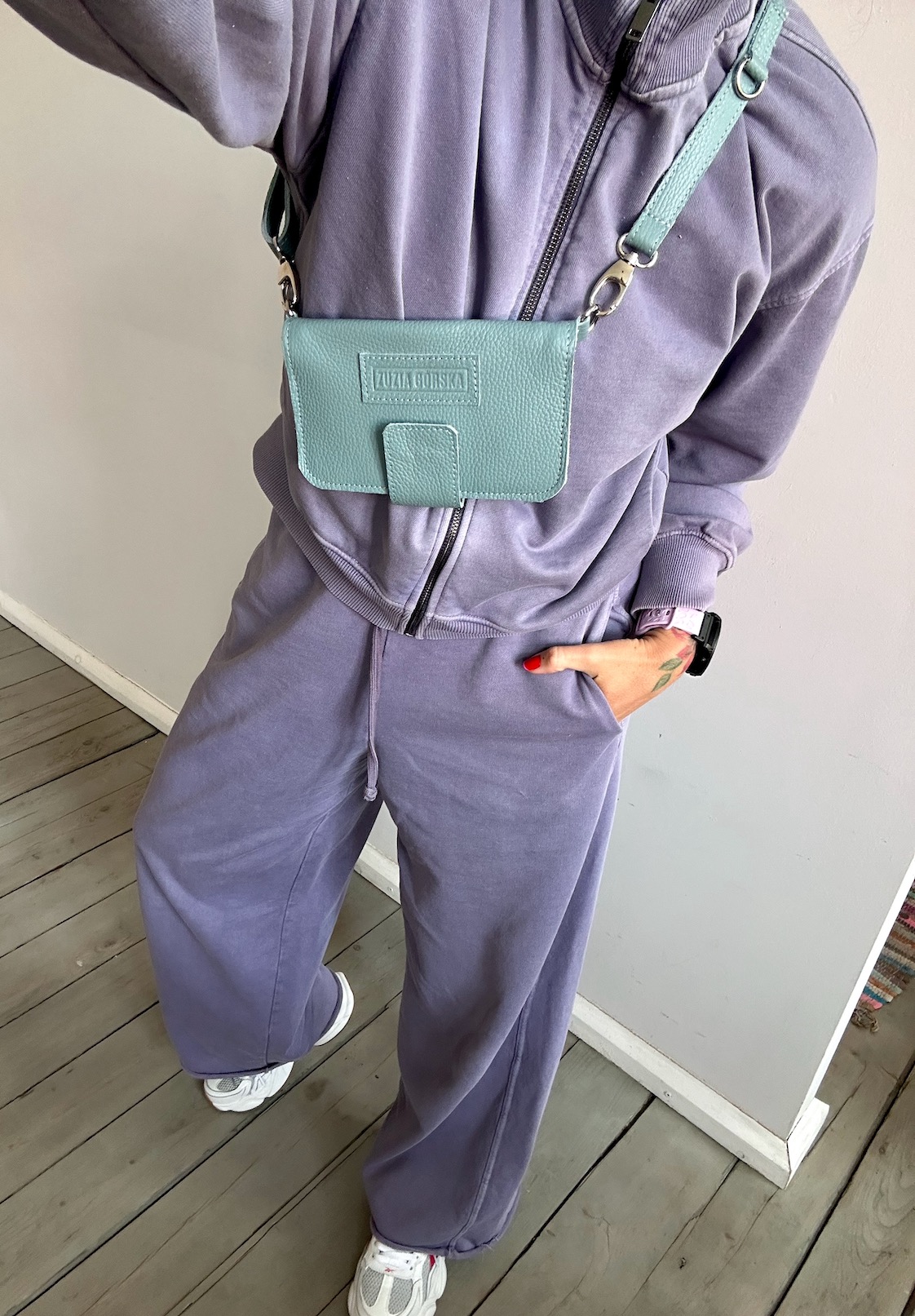 Uszyta ze skór naturalnych - licowych, welurowych, nubukowych.